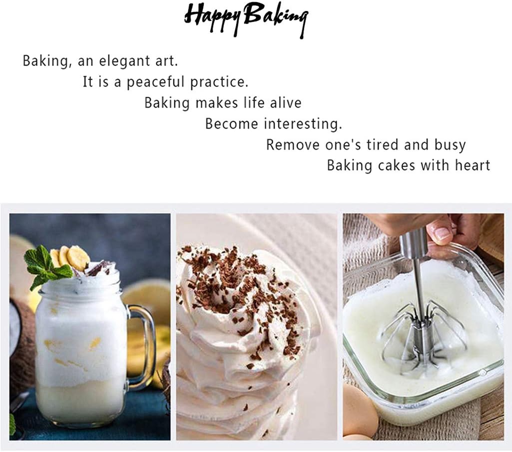 ★SEMI-AUTOMATIC DESIGN – The Semi Automatic Whisk adopts the SPRING DESIGN, adopts riveted structure, Unlike the unstable welded connection, the embedded rivet is more secure and long-lasting, Press it down and it can turn quickly, Experience the feeling of easy stirring,