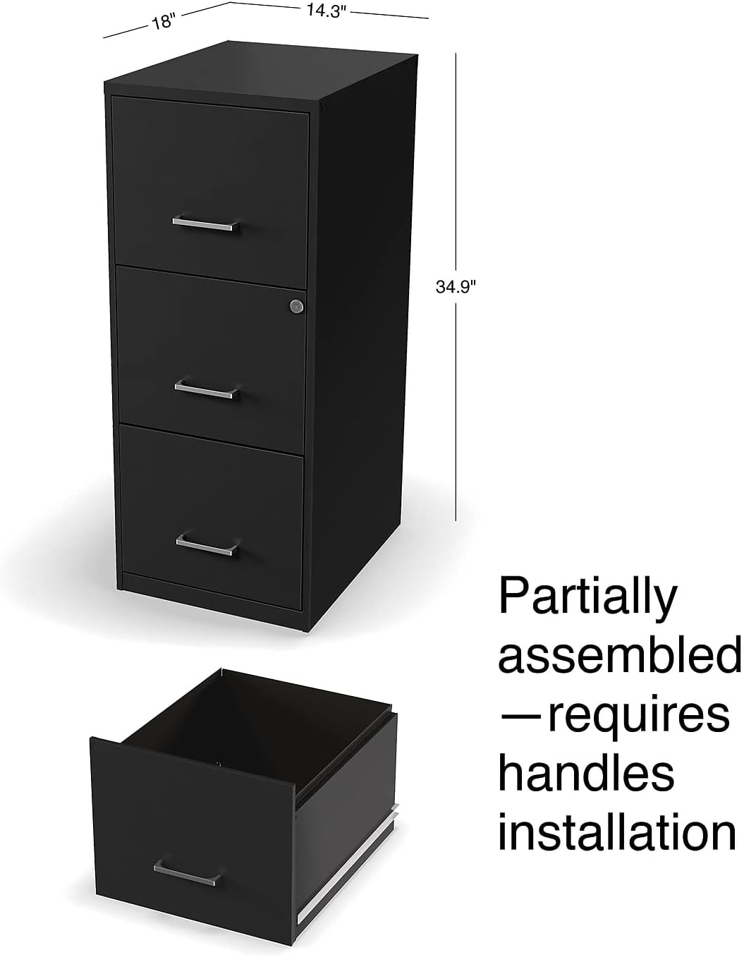 STYLISH MODERN DESIGN: Made from high-quality materials, our file cabinet is partially assembled and offers a sleek, black finish measuring 18.9 inches D x 14.3 inches W x 34.9 inches H