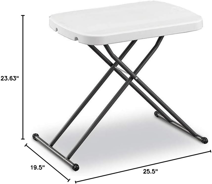 Rectangular table has Adjustable Height 23.63″ – 26.63″H x 25.5″L x 17.8″ W. Holds up to 25 lbs. when evenly distributed. Seats up to two people. Comes fully assembled for immediate use. 1-year manufacturer limited warranty.