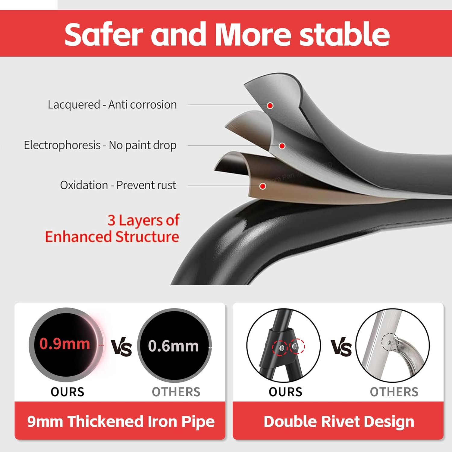 Non-Slip Ergonomics for Confident Use – Our ladders are designed with wide, non-slip iron treads for heel-to-toe support and sponge-covered handrails for a firm, comfortable grip that gives you confidence when climbing the ladder. Our ladders come with large rubber feet that grip the ground securely to prevent movement and scratches to the floor. The unique curved design gives more leg room and protects your legs from knocks.