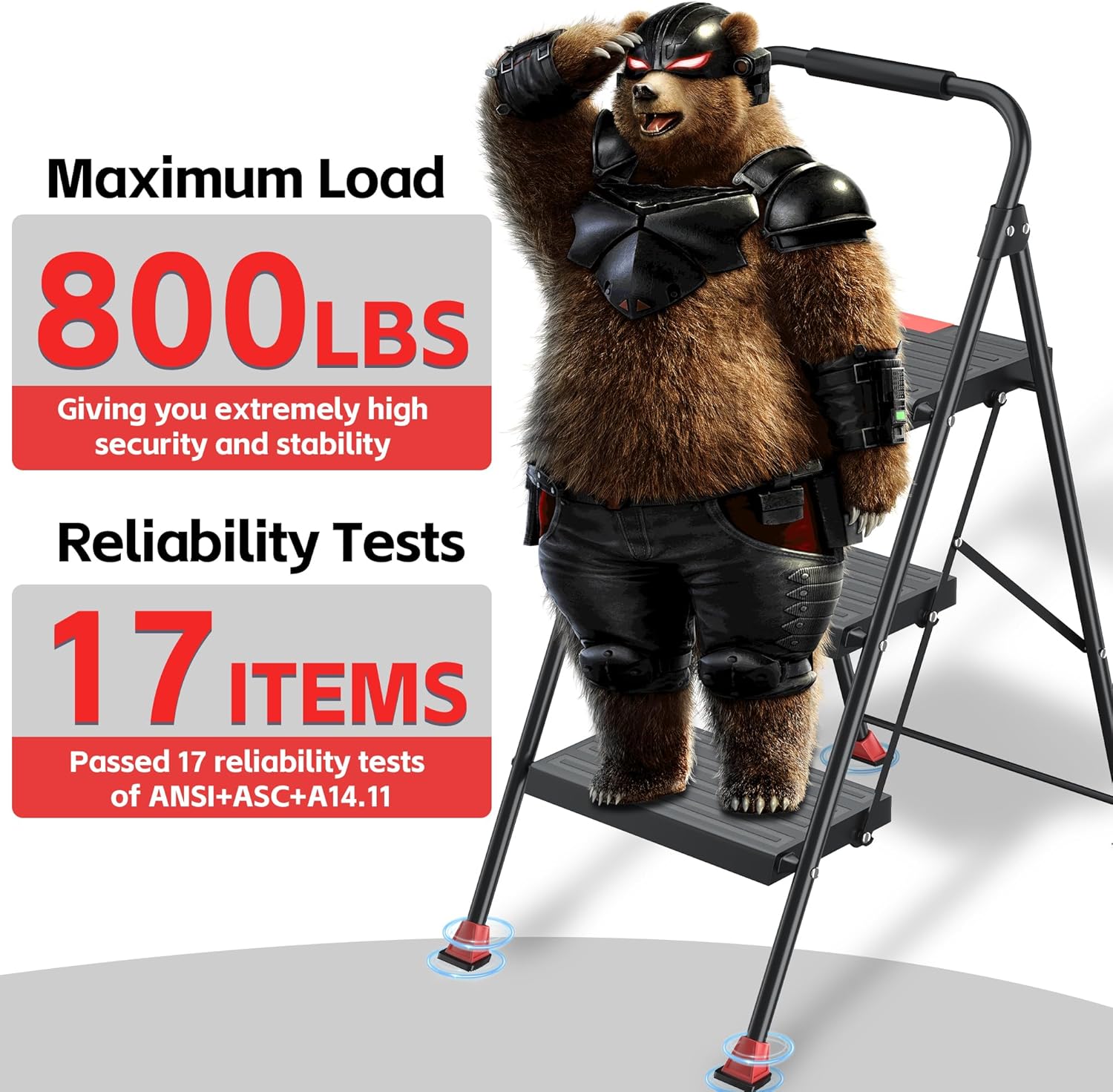 Heavy-Duty Performance and Durability – 3 step stool ladder that’s built to last, with the capacity to hold up to 800 pounds , is ideal for heavy-duty use. Crafted from thickened 9mm Alloy Steel, these ladders are resistant to wear, corrosion, rust, and temperature extremes, ensuring long-lasting performance and durability. They are perfect for ladders for home and step stools for adults, providing a reliable solution for all your height-related needs.