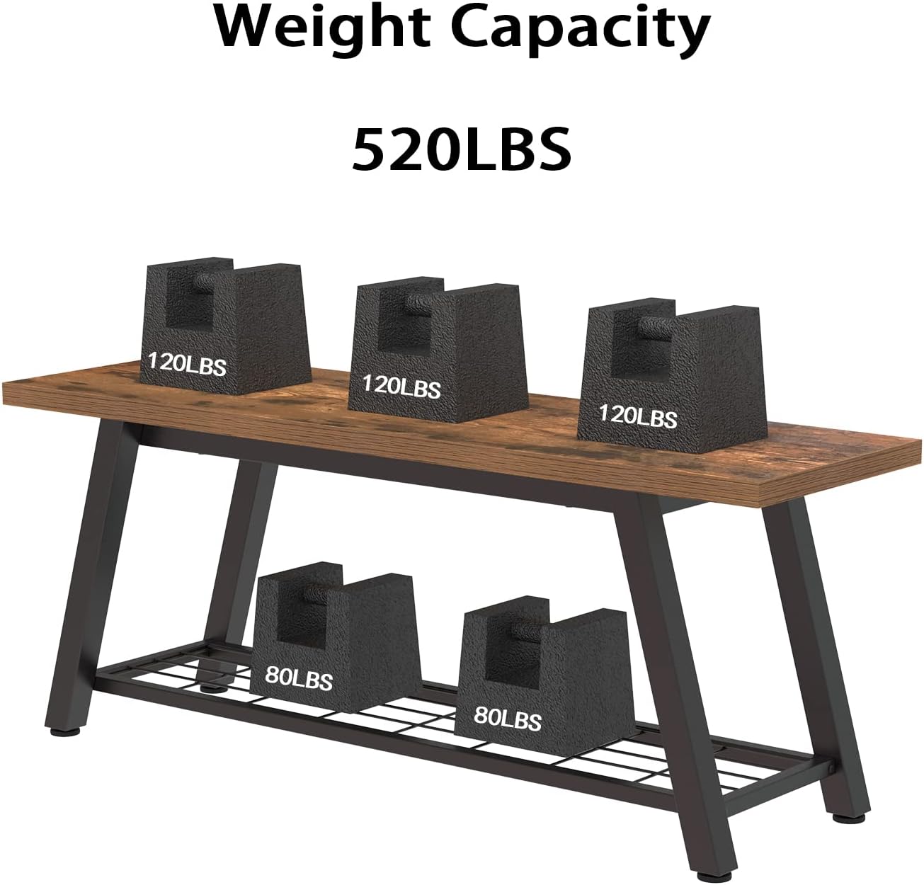 Storage Bench Industrial Rustic Wooden and Metal Entryway Shoe Boots Storage Rack Long Bench Seat for Hallway Bedroom Retro Brown Farmhouse Style