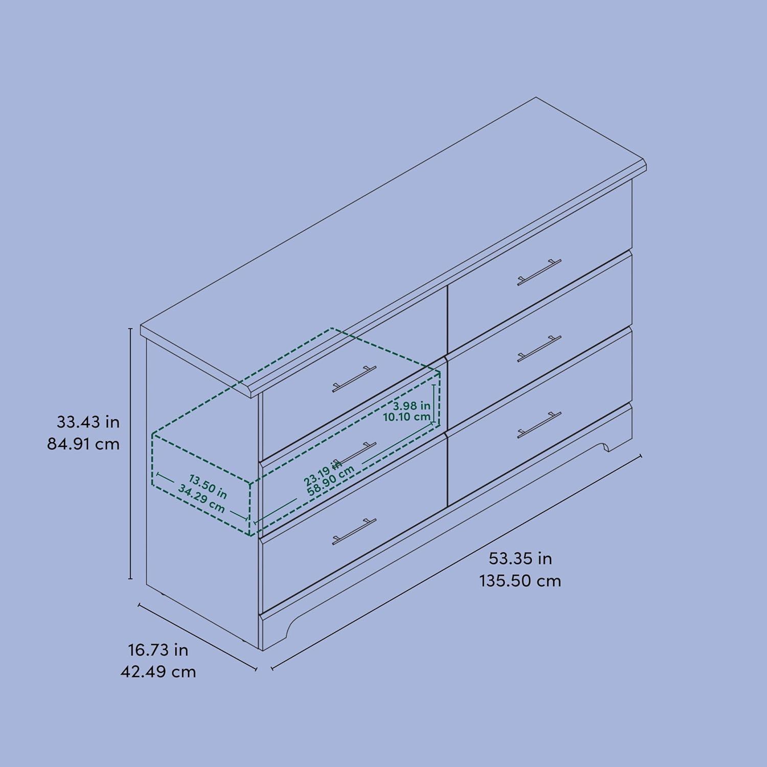NURSERY AND KIDS BEDROOM DRESSER: Universal design to match any nursery or kids bedroom; 6 drawer bedroom dresser; Crafted of wood composites, laminated with a durable, easy-to-clean PU coated surface, and includes Euro drawer glides; Assembly required