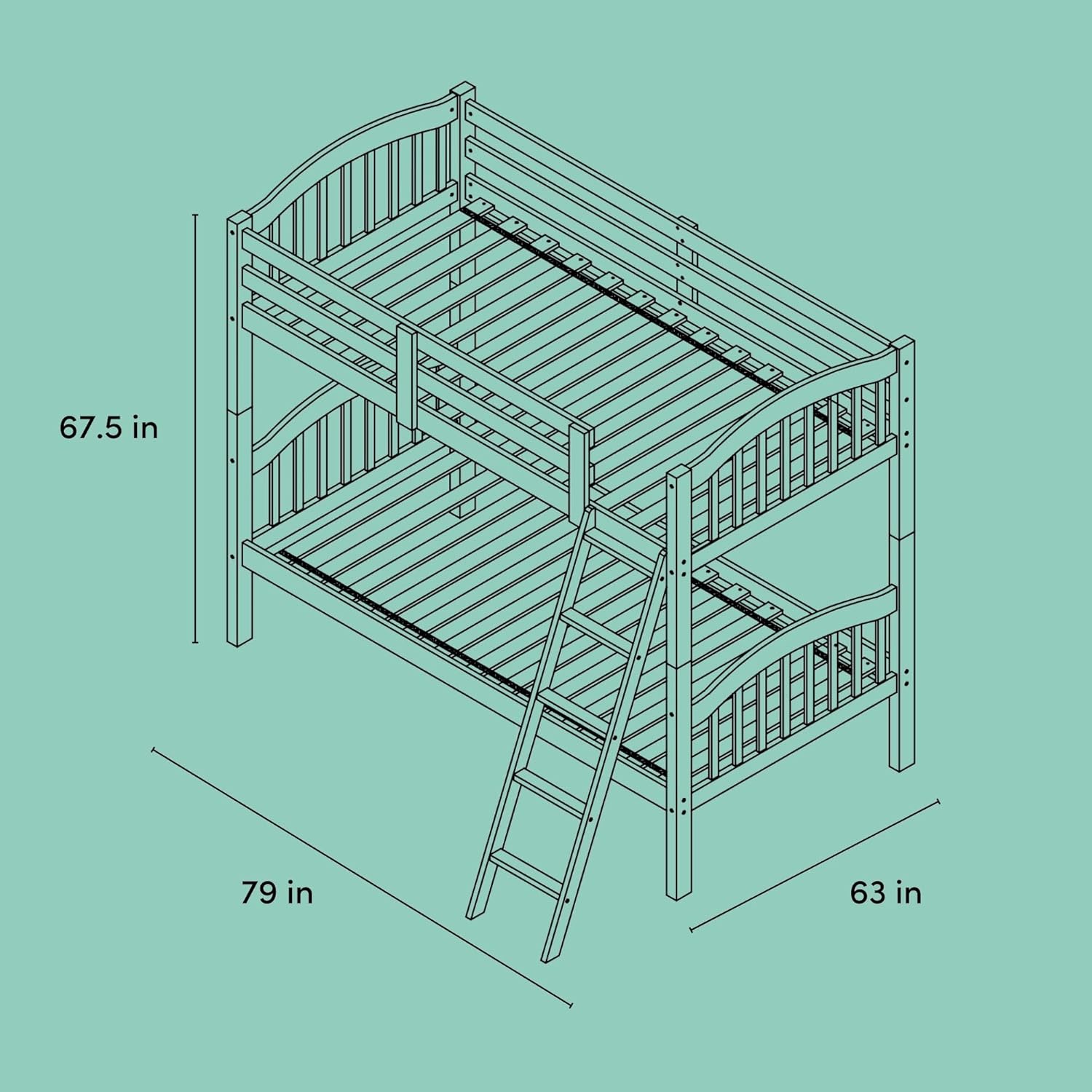 BUNK BED DIMENSIONS (ASSEMBLED): Depth (41.97 inches) x Length (79.13 inches) x Height (64.48 inches) x Weight (142.80 pounds); Mattress must not exceed 7 inches (17.78 cm) in thickness