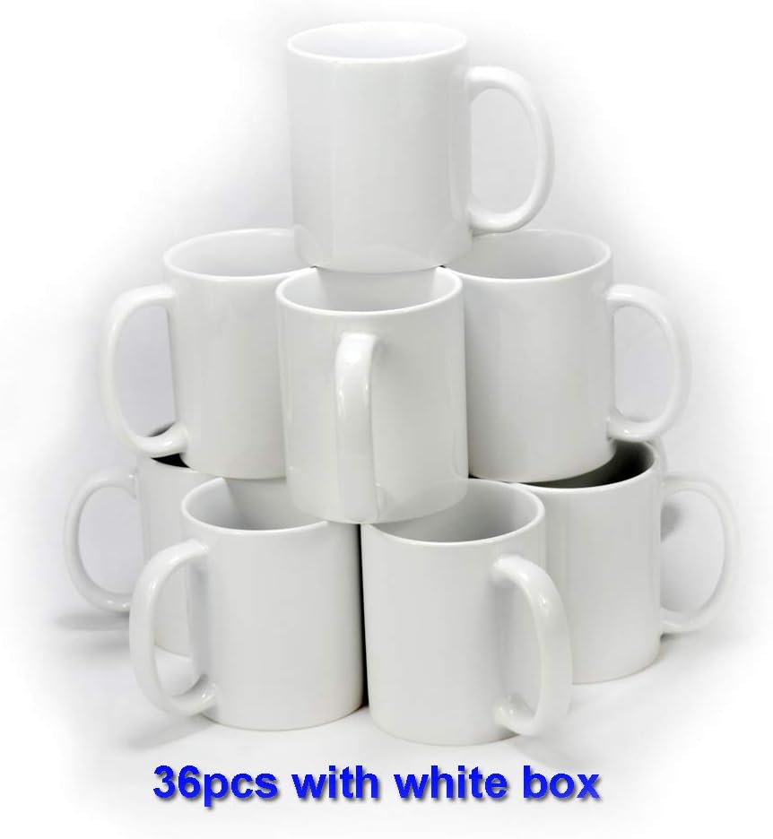 Sublimation Mugs, Cups 11oz Sublimation Ceramic Blank Coffee Mugs,White Cups, Sulimation Blanks, Blank White Mugs-36 pack bulk bundle (36pc white mug single box)
