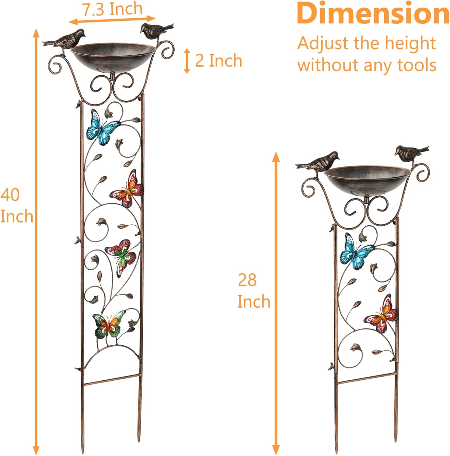 【Elegant Design 3 in1】It features 2 decorative metal birds and a bowl as the bird bath at the top can attract birds here to take a bath. 4 bright-colored butterflies on the trellis create a conducive environment for climbing flowers. It also can be left unadorned to lend sculptural interest to garden, flower bed or border.
