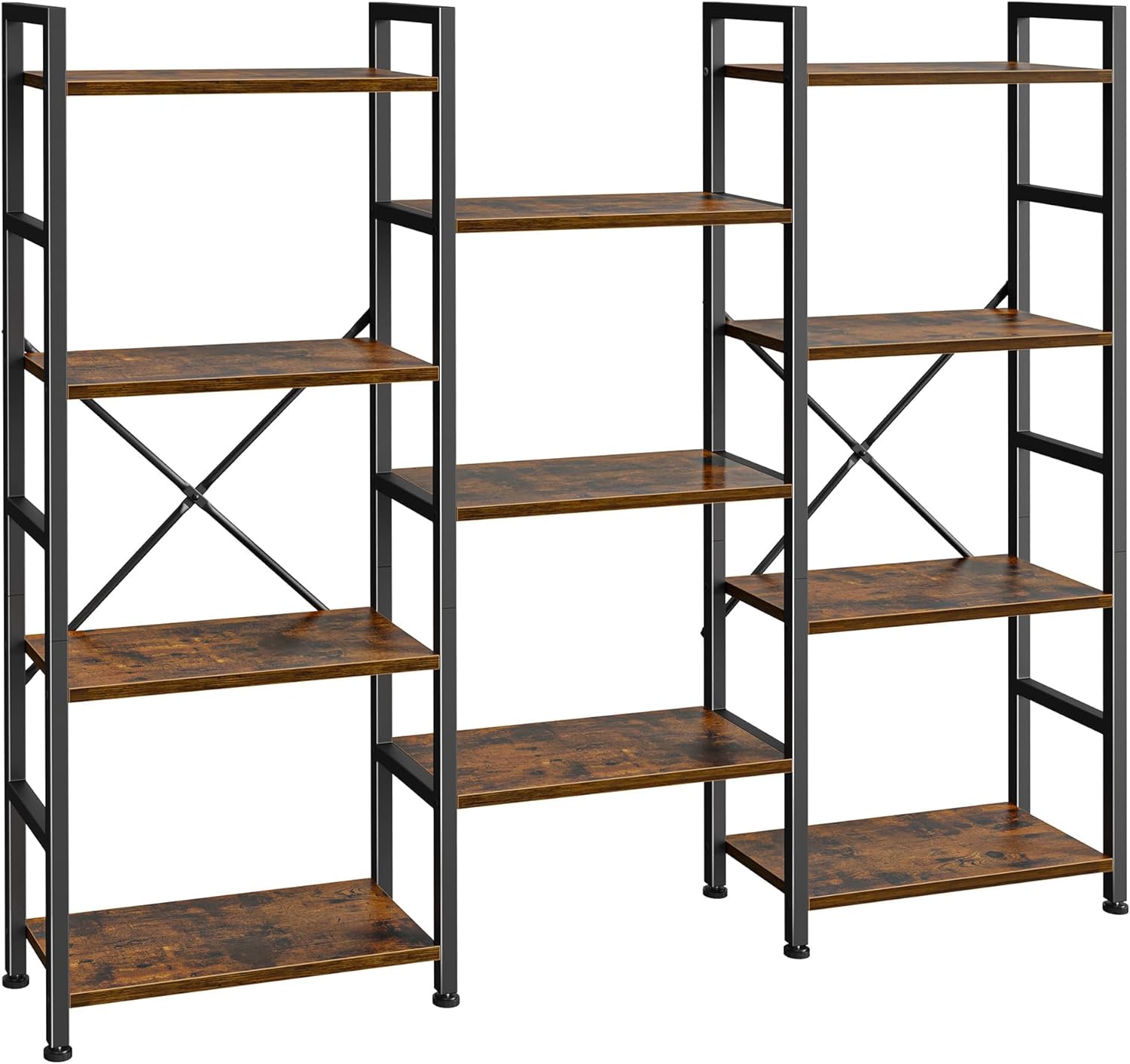 SUPERJARE Triple 4 Tier Bookshelf, Bookcase with 11 Open Display Shelves, Wide Book Shelf Book Case for Home & Office, Rustic Brown