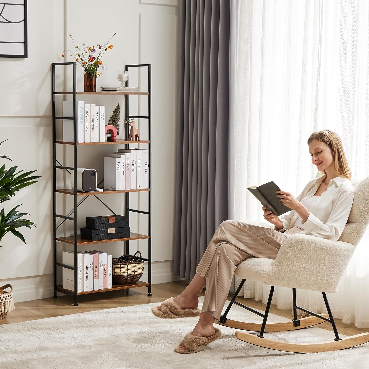 Sweetcrispy Book Shelf, 5 Tier Bookcase, Modern Tall Bookshelf for Garage Kit, CDs, Movies, Industrial Corner Storage Organizer for Bedroom Home Office Kitchen Living Room, Rustic Brown