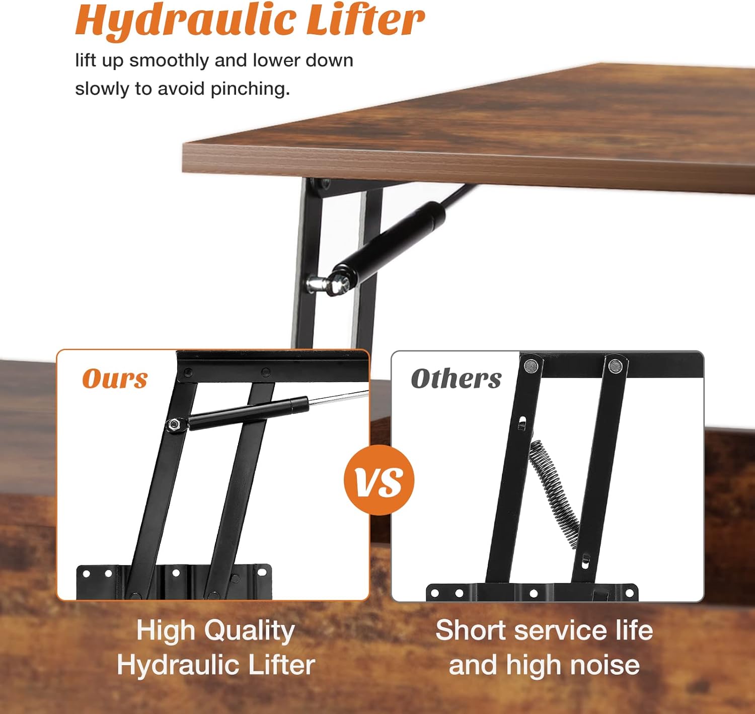 Adjustable Lift-Top for Work & Dining – This coffee table features a smooth-lifting tabletop that raises to 6.3″ (supporting 11 lbs), creating the perfect ergonomic workspace for laptops or dining. The sturdy steel hinge mechanism ensures stability at any height, while the recessed finger-safe opening prevents pinching.