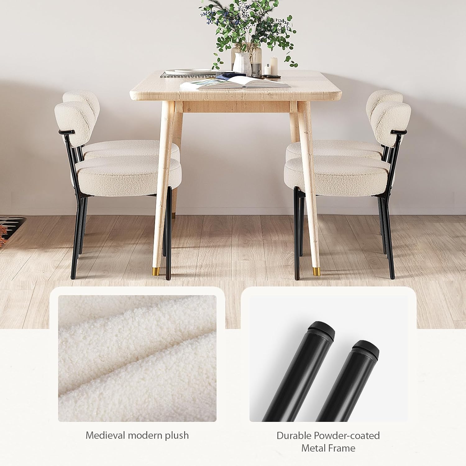 Black Metal Support Legs: These upholstered dining chairs feature matte black metal legs and modern design that makes them easy to match with various kitchen or living room styles, adding a touch of delicacy to your dining area. The metal structure provides durability and stability, supporting up to 275lbs, bringing a sense of delicacy to any restaurant while providing sturdy support