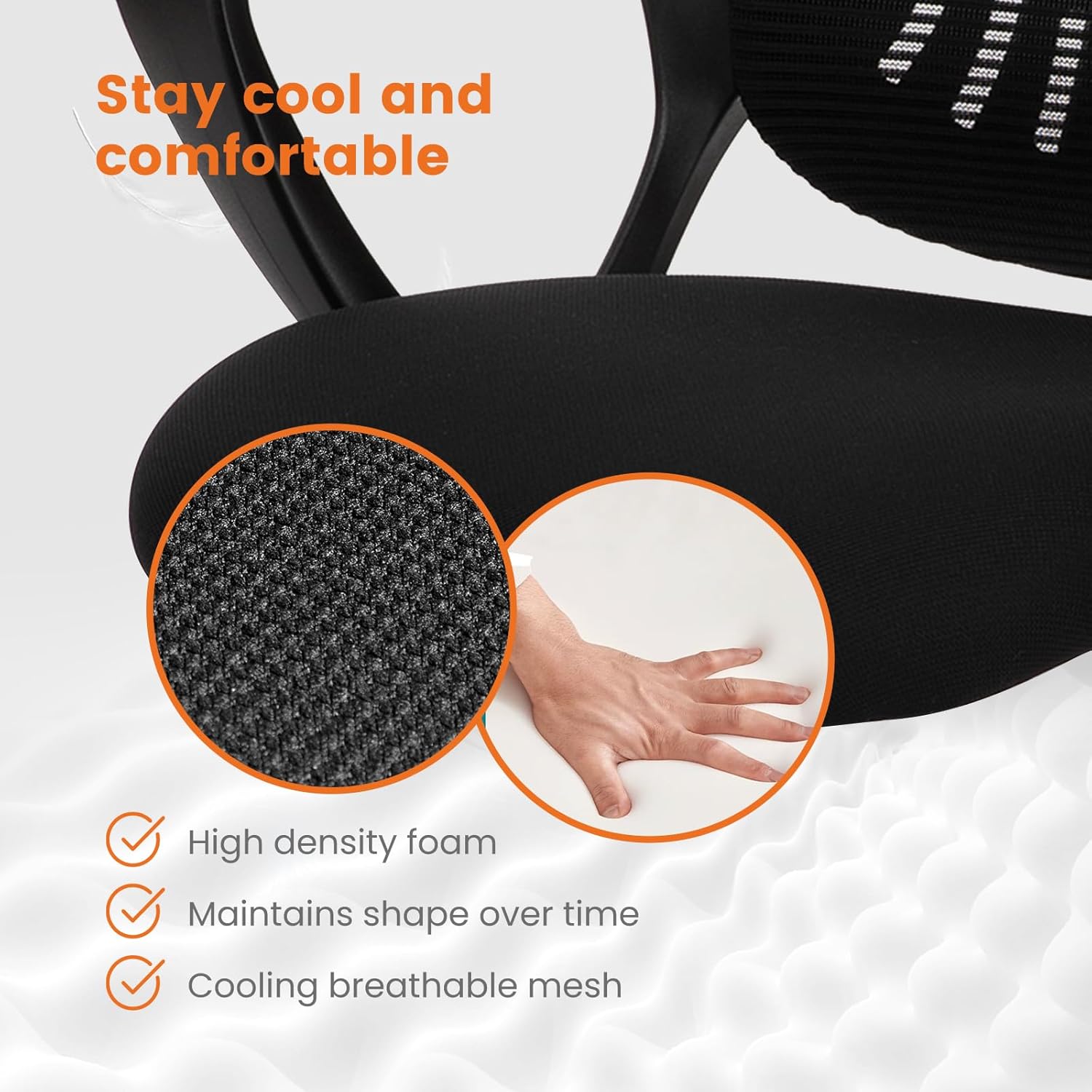 【Comfortable Seat for All Day Comfort】- Ergonomic features an all-elastic premium mesh back and a high-density sponge seat making the mesh office chair a good choice for all-day comfortable office seating. The unique mesh design is skin-friendly and breathable, which keeps you cool all day.