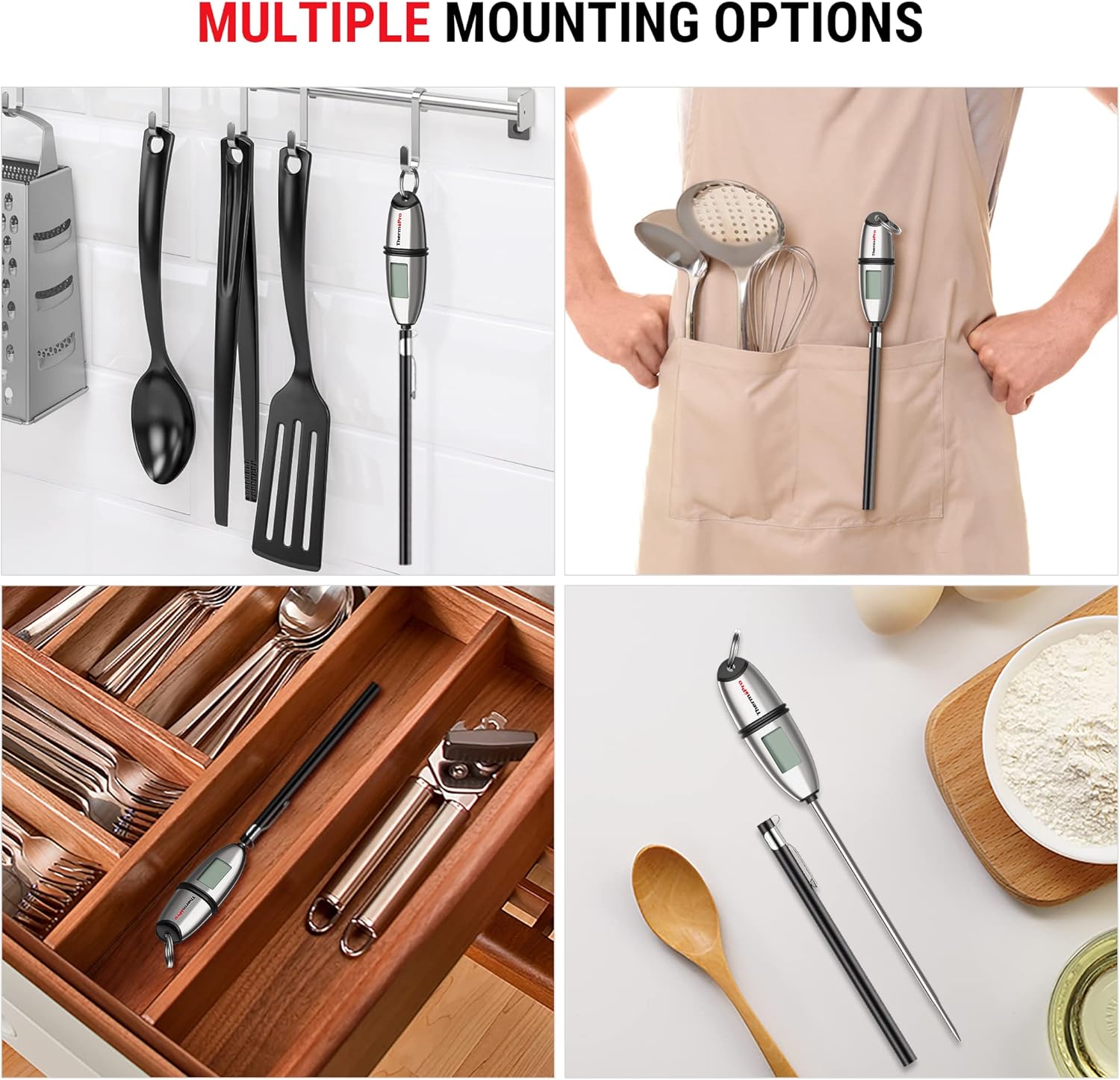 Super long probe: Cooking thermometer for liquids with 5.3 inches super long, food grade stainless steel probe keeps your hands away from the heat and avoid dangerous situations