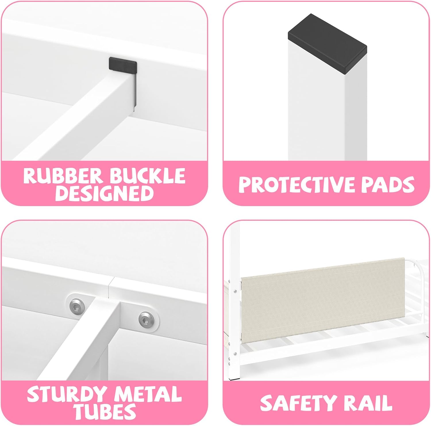 🌟Sturdy Frame: Timy Twin Size House Bed uses a high-quality metal frame, which is very stable and safe, ensuring that kids will not shake when playing. The front, back and side guardrails protect children’s sleep, and parents no longer have to worry about your kids sleeping alone.