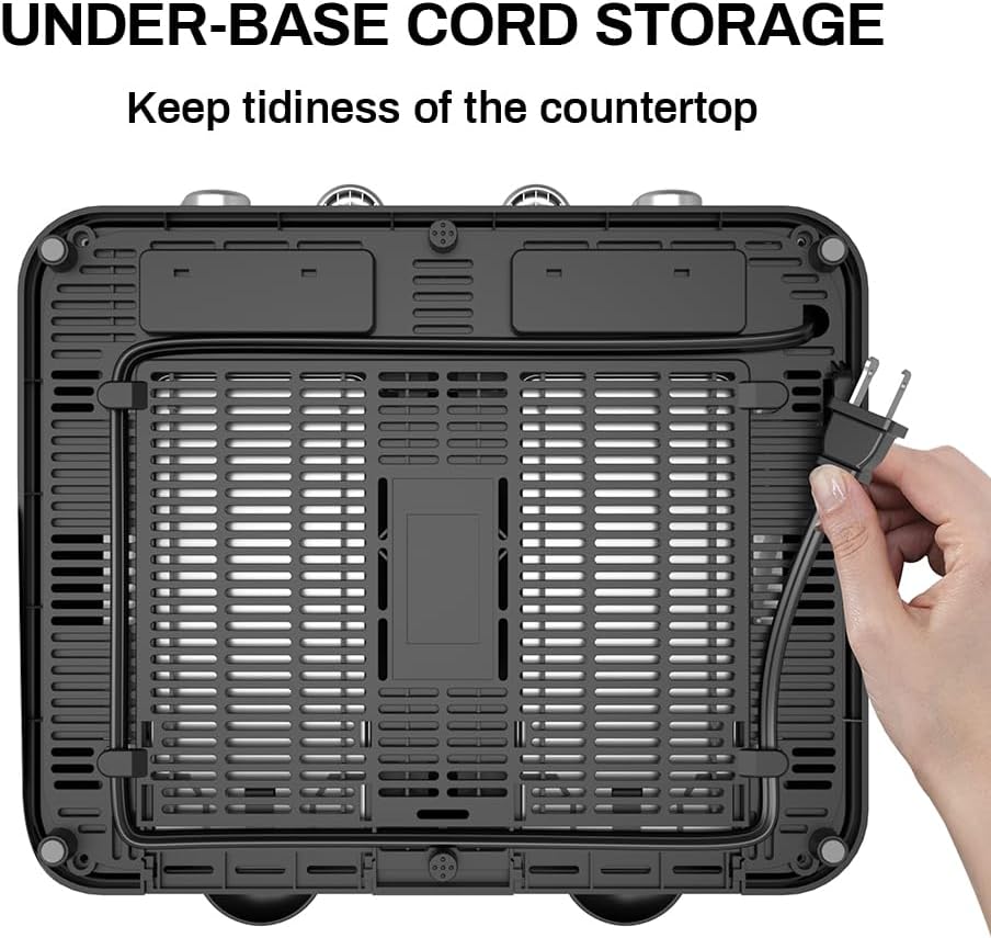 HUMANITY DESIGN – An ergonomic lift lever to press with good feeling; Under-base cord storage keeps tidiness of the countertop in your kitchen; Non-slip base stabilizes the body of the stainless toaster.