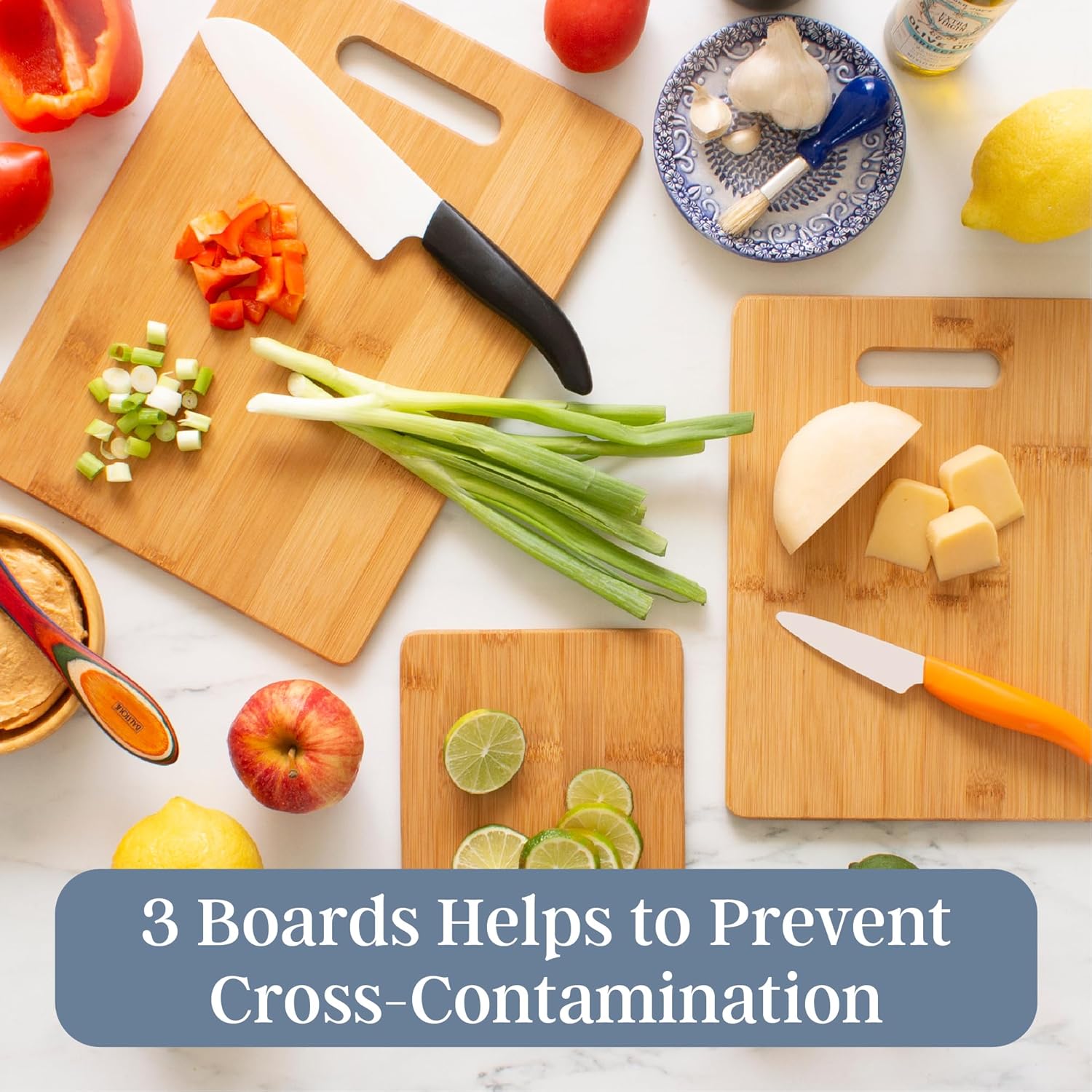 Sustainable Choice for Home Cooks – Made from renewable bamboo, this 3-piece cutting board set is recognized as Climate Pledge Friendly through ClimatePartner’s certification, which confirms that carbon emissions from this product’s lifecycle were measured, reduced, and offset— an eco-conscious alternative to plastic or heavy wood boards