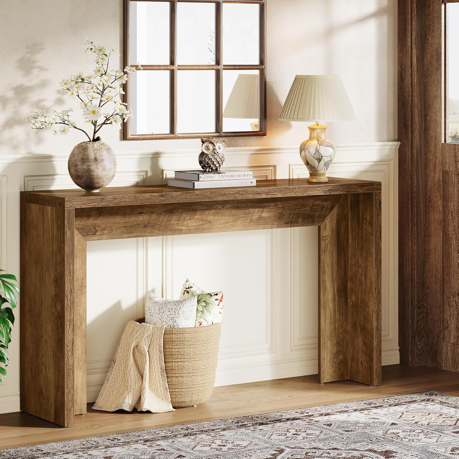 Stylish & Functional: Our Tribesigns narrow console table boasts a farmhouse-inspired design, featuring a rich brown finish and clean lines that add understated elegance and cozy warmth to any space