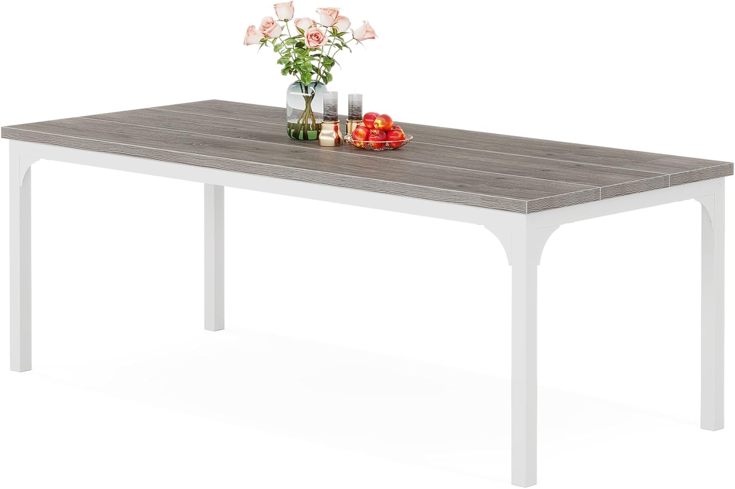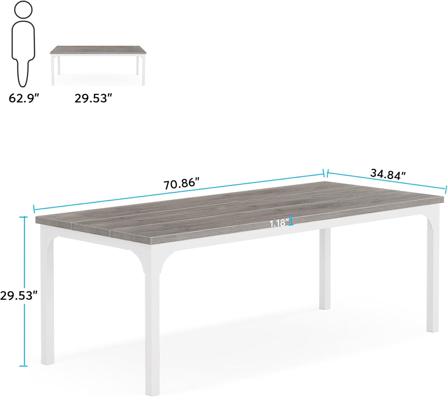 Tribesigns Farmhouse Dining Table for 6-8, 70.9 Inch Rectangular Wood Kitchen Table with Heavy Duty Metal Legs, Industrial Dinner Table for Dining Room, Living Room, Grey and White
