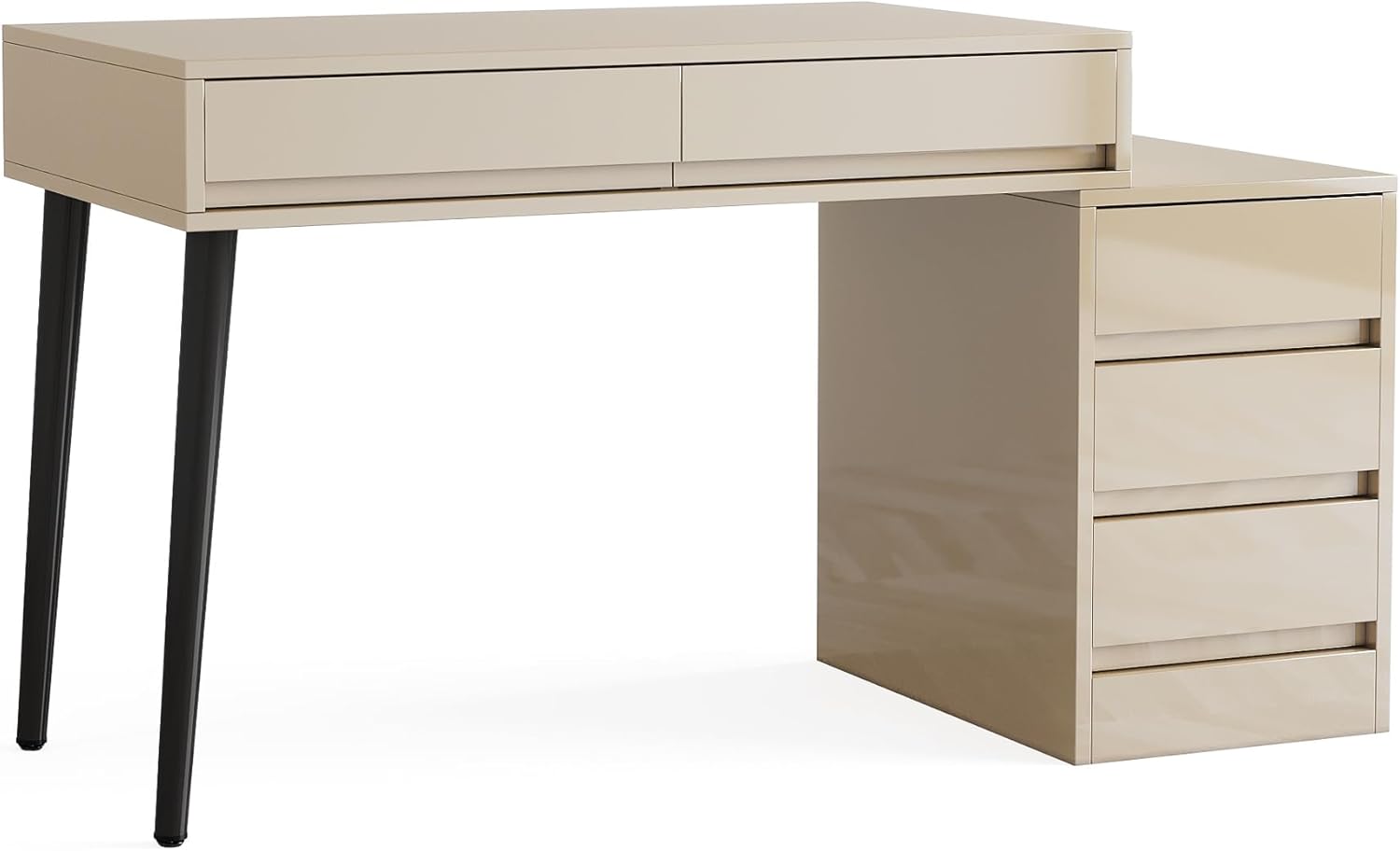 [Modern & Industrial Style]: Finished in glossy beige, this vanity desk lends an industrial and fashionable touch to any setting, whether for work or makeup. It easily complements a wide range of home decors. This computer desk can remain stylish over a long period of time and is easy to maintain thanks to its minimalistic approach.