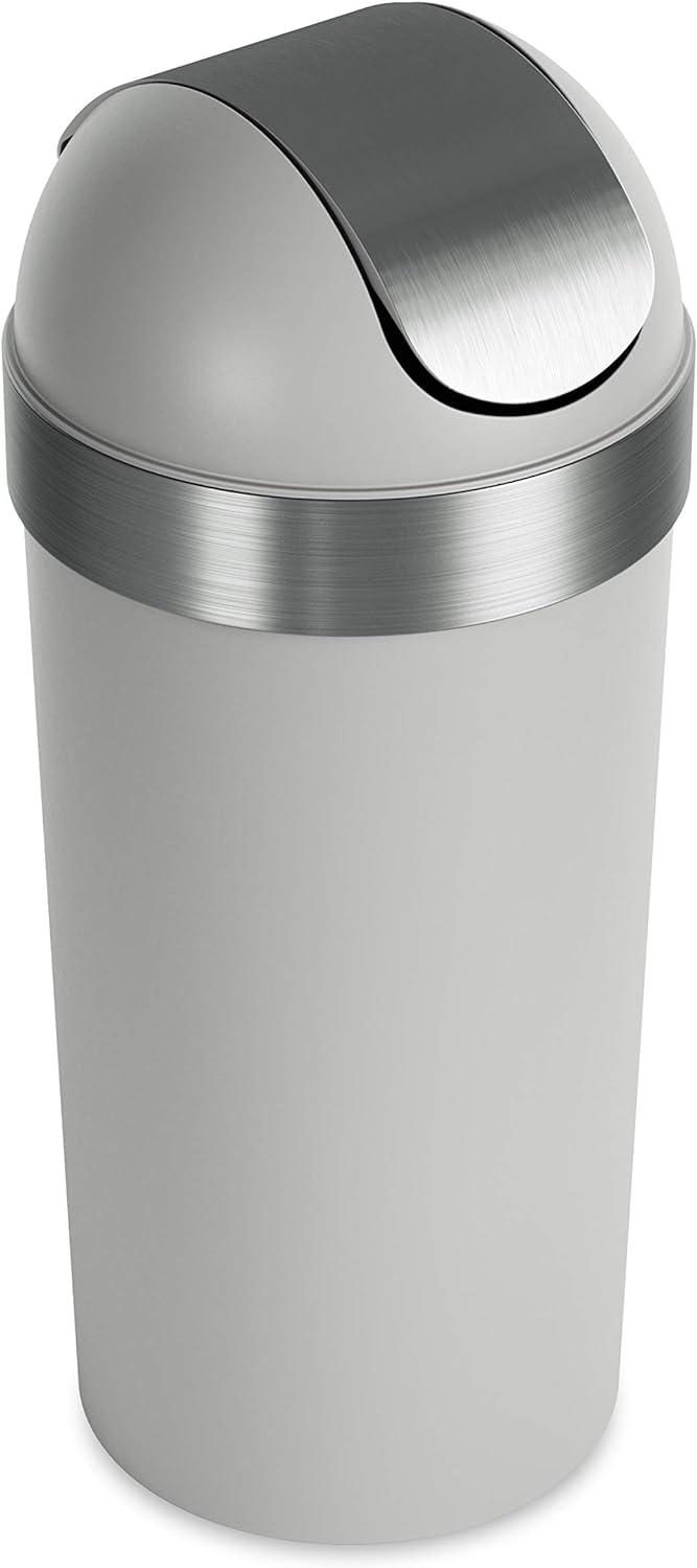 Umbra Venti Kitchen Trash Can with Swing Top Lid, Large 16-Gallon (62 L) Capacity, Grey