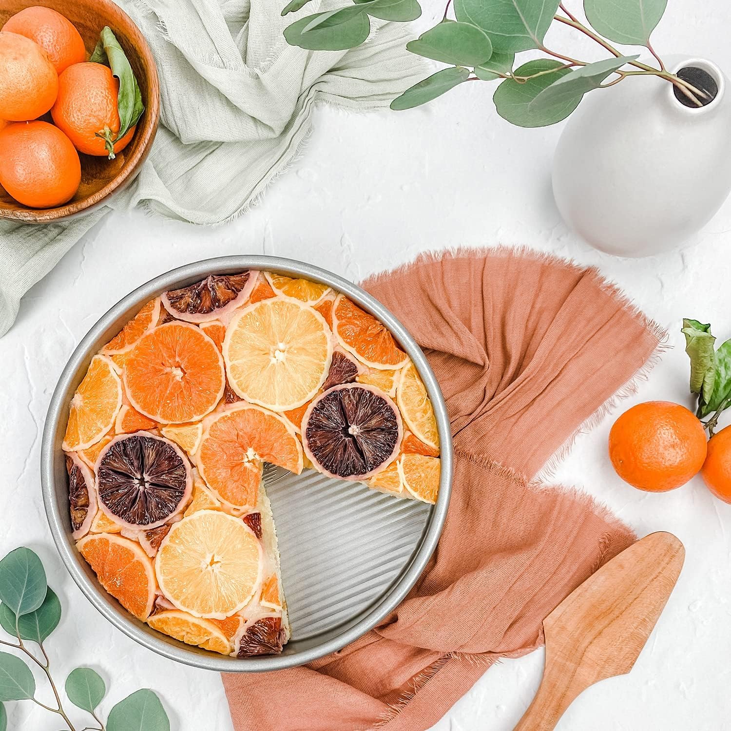 The set of 2 USA Pan 9-Inch Round Cake Pan measures a full 9 x 2 inches* and makes the perfect choice for baking decadent classic cakes. This pan will bake your favorite cake recipes like chocolate or red velvet, perfectly. The cake pan surface is coated with AMERICOAT Plus, a patented non-stick silicone, allowing you to easily release your cake from the pan. The non-stick feature makes clean-up truly effortless. AMERICOAT Plus is also PTFE, PFOA, and BPA free. Every USA Pan is made in the USA and has been designed with the same standard high performance features that commercial bakers enjoy including aluminized steel and heavy gauge steel construction that allows for even heat distribution and maximum service life. The set of 2 USA Pan 9-inch Round Cake pan’s unique fluted surface design facilitates air circulation and also maximizes pan strength, which helps to resist warping. USA Pan’s professional grade bakeware helps everyday home bakers produce professional grade baked goods. USA Pan bakeware is long-lasting, durable, reliable. USA Pan is a Bundy Family owned company, based in the Greater Pittsburgh, Pennsylvania area that has been producing high performance bakeware for over 50 years. *Dimensions represent baking surface, not overall pan size. Baking Surface Dimensions : 9 x 9 x 2 inches, Outer Dimensions: 9.5 x 9.5 x 2 inches