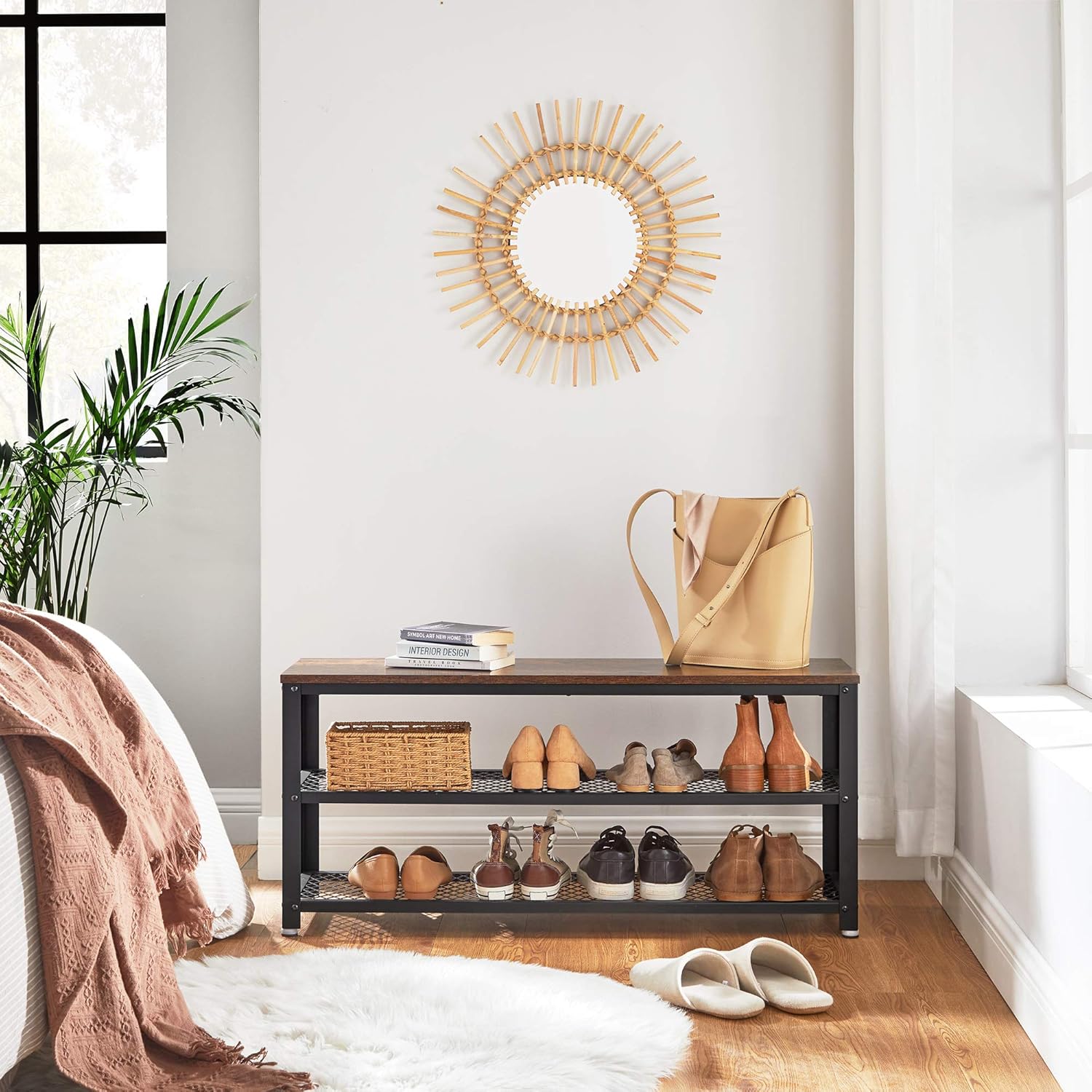 VASAGLE 3-Tier Shoe Rack, Shelf Storage Bench with Metal Mesh Shelves and Seat, Free Standing Shoe Organizer for Entryway, 11.8 x 39.4 x 17.7 Inches, Rustic Brown and Black ULBS078B01