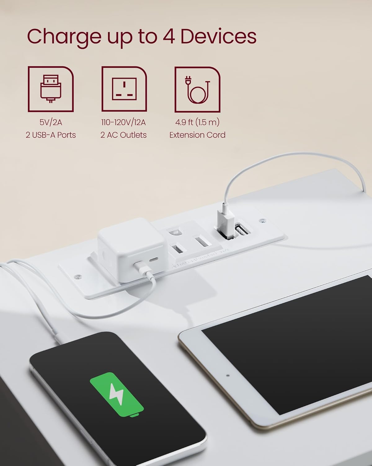 【CONVENIENT CHARGING STATION】With a built-in power strip that includes 2 AC outlets and 2 USB ports, plus a 4.9 ft extension cord, you can power up all your essential devices, from your mobile phone and tablet to your lamp and laptop, right from your bed.