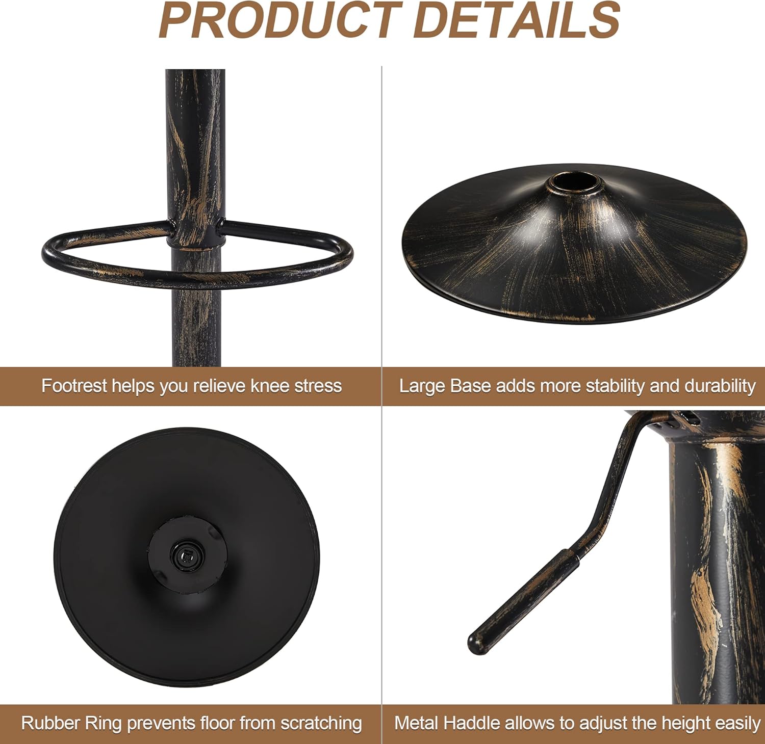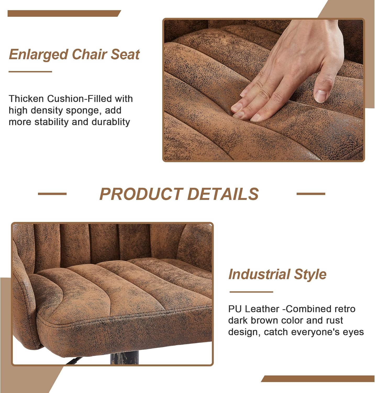 Retro Elegance Meets Modern Functionality:Luxuriously upholstered with high-quality leather, this bar stool brings a touch of elegance and sophistication to any space. A great combination with retro dark brown color and rust design that will catch everyone’s eyes , perfect as bar stools kitchen island stools, counter stool, dining stool and so on.