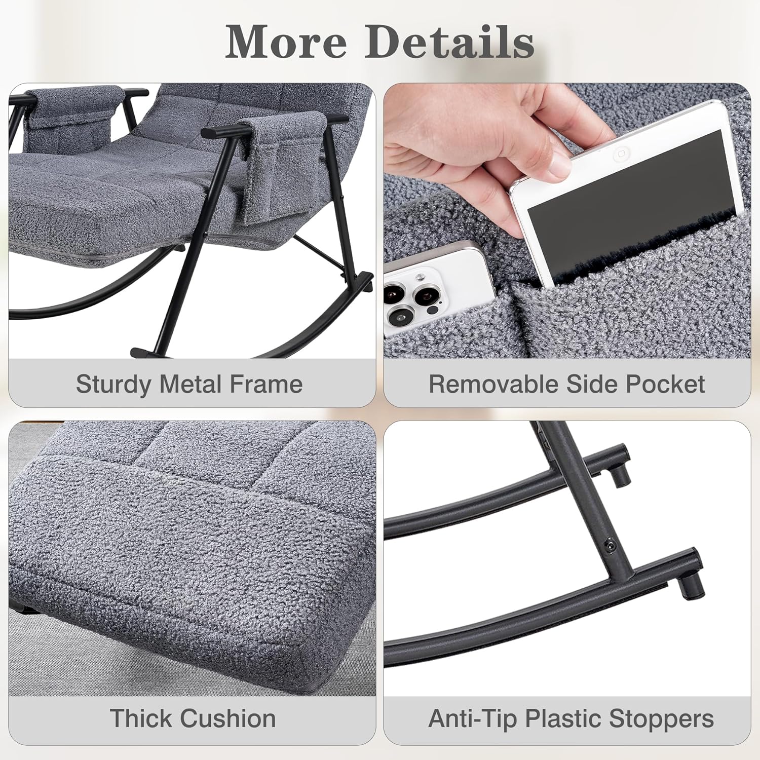 Easy Assembly: This upholstered rocker features a straightforward design, comes with clear instructions and all necessary tools, allowing you to assemble your rocker chair quickly.