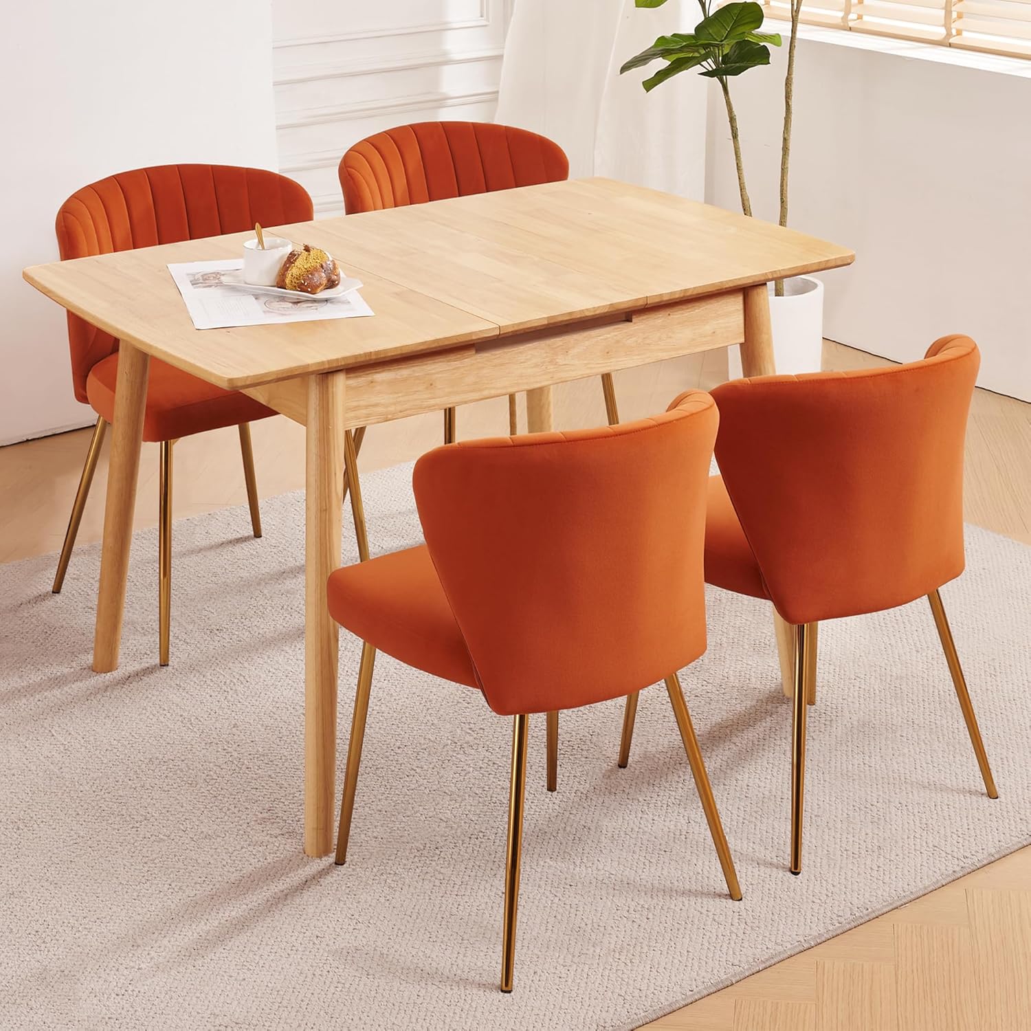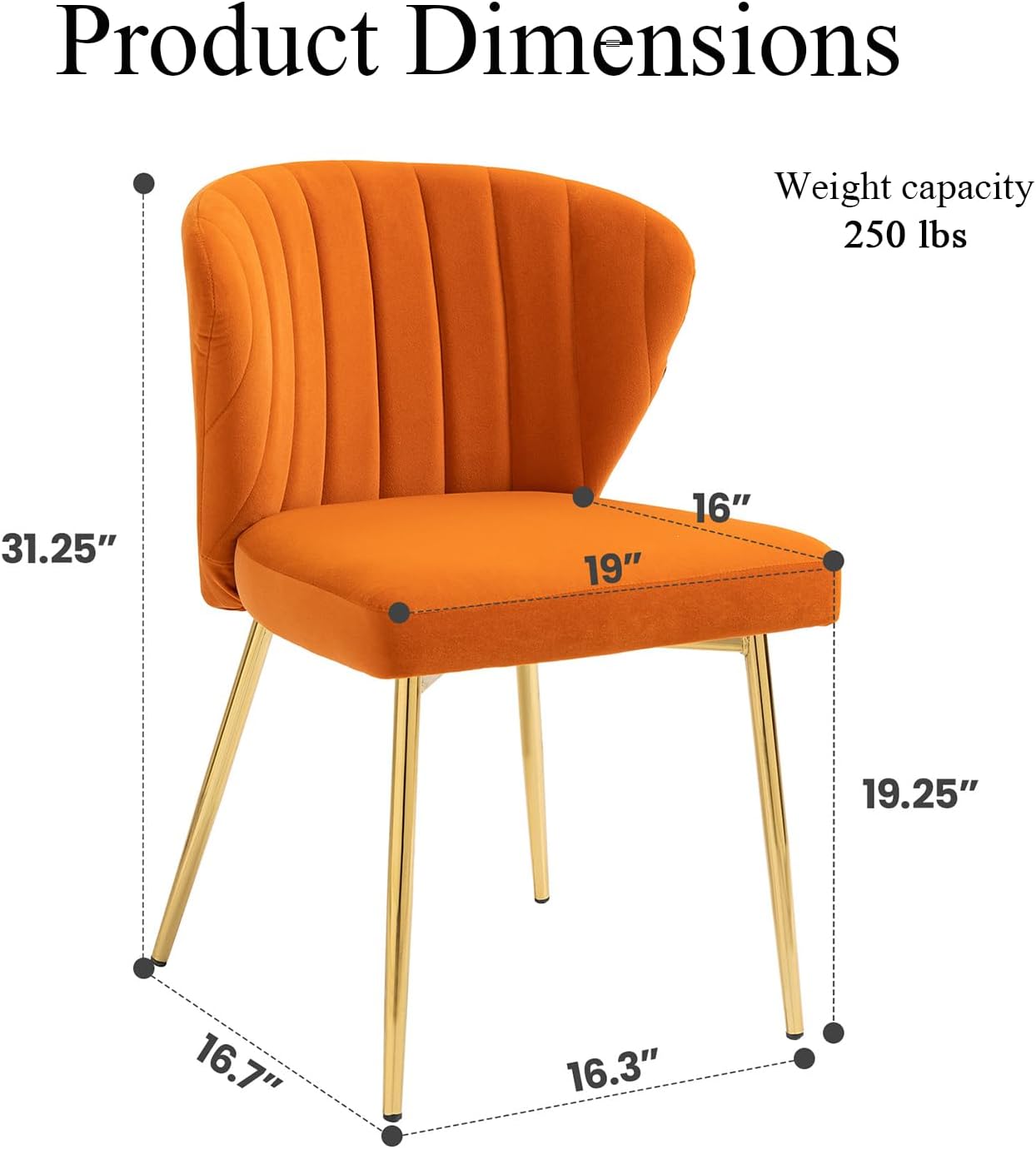 Velvet Dining Chairs Set of 2, Modern Upholstered Vanity Chairs with Golden Metal Legs for Dining Room Kitchen Vanity Patio (Orange)