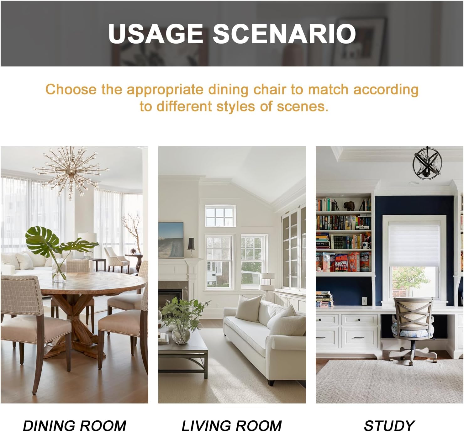 🍷Indulge in the plush comfort of our dining room chairs, thanks to the high-density foam and layered board construction. The double elastic structure with high-rebound sponge ensures a cozy seating experience, inviting warmth and relaxation into your home.
