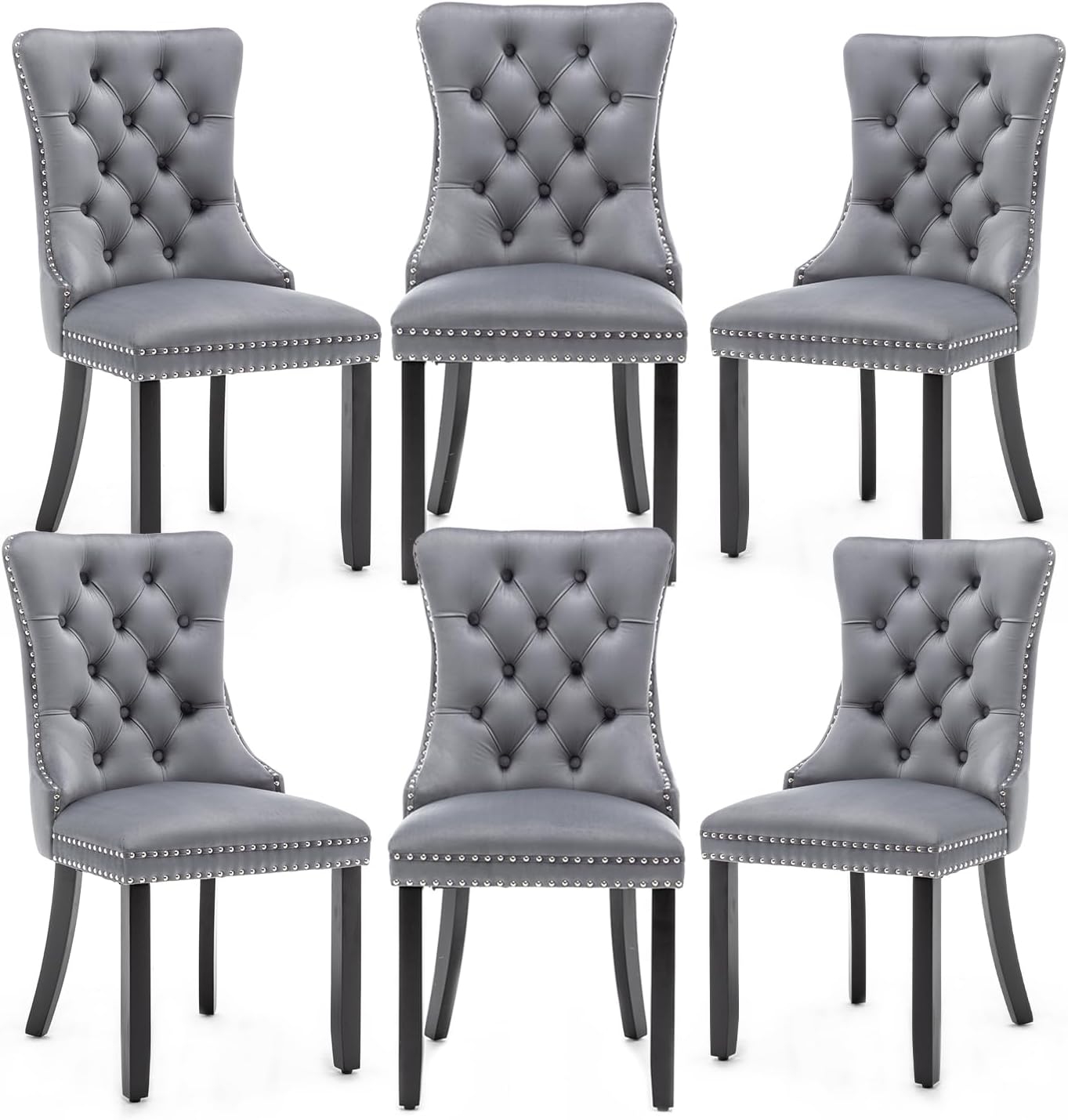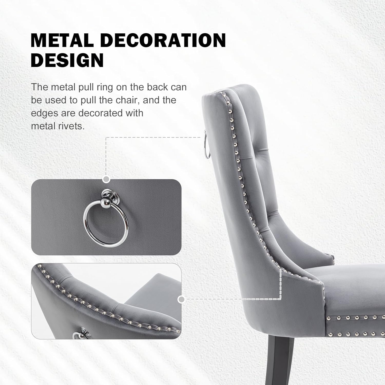 Velvet Dining Chairs Set of 6,Upholstered Dining Chairs with Ring Pull Trim and Button Back,Modern Seating for Kitchen, Bedroom & Living Room(Grey)