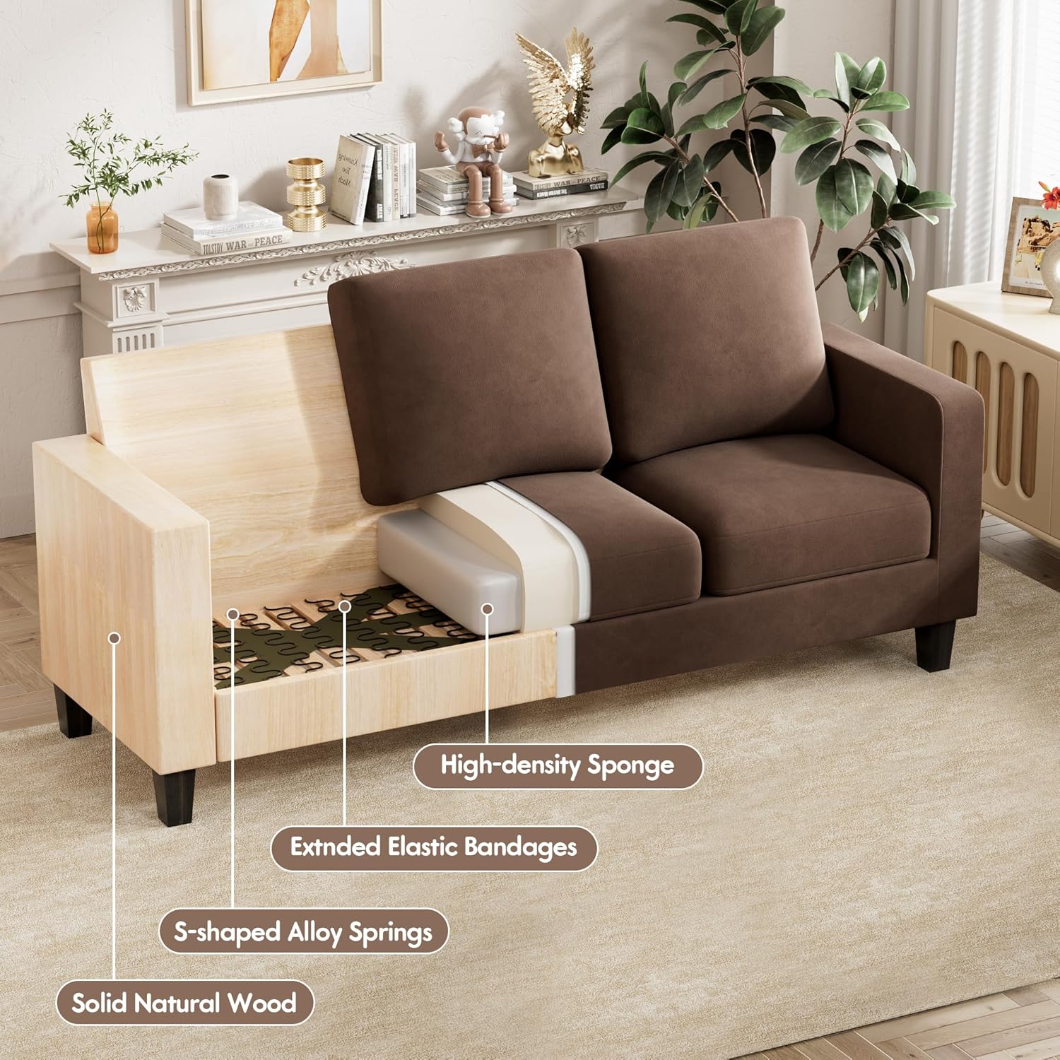 [Durable & Washable] Constructed from solid natural wood, S-shaped alloy springs, and high elastic bandages, the couch is durable and stable for long-term use. The cushion covers are removable and washable, easy for you to keep clean