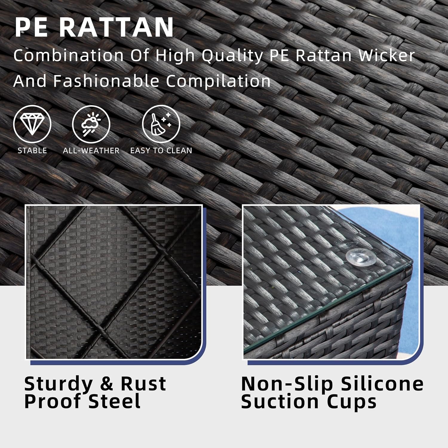 Sturdy Patio Furniture: This modern outdoor furniture set is made of solid powder coated steel frame, rustproof and sturdy; hand-woven resin wicker offers high tensile strength, water resistance, which is strong enough to withstand all-weather variations for long service life.