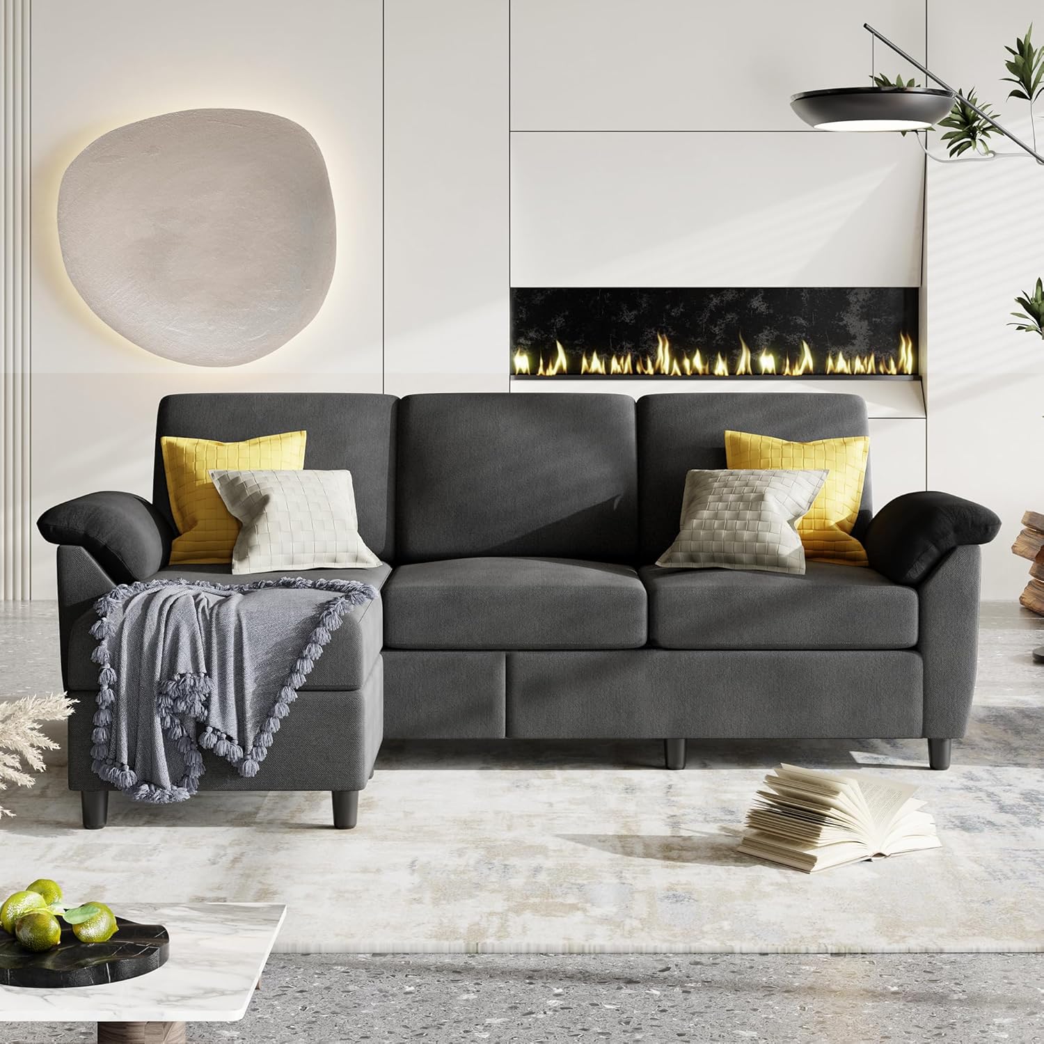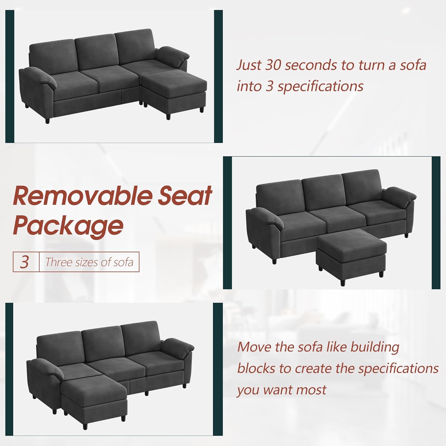 Multi-purpose Design: This small space reversible sectional sofa with a movable ottoman, you can place square ottoman on left or right of sectional sofa to fit against the wall in your living room. You can use the variability of sofa to change the style of the room at any time.