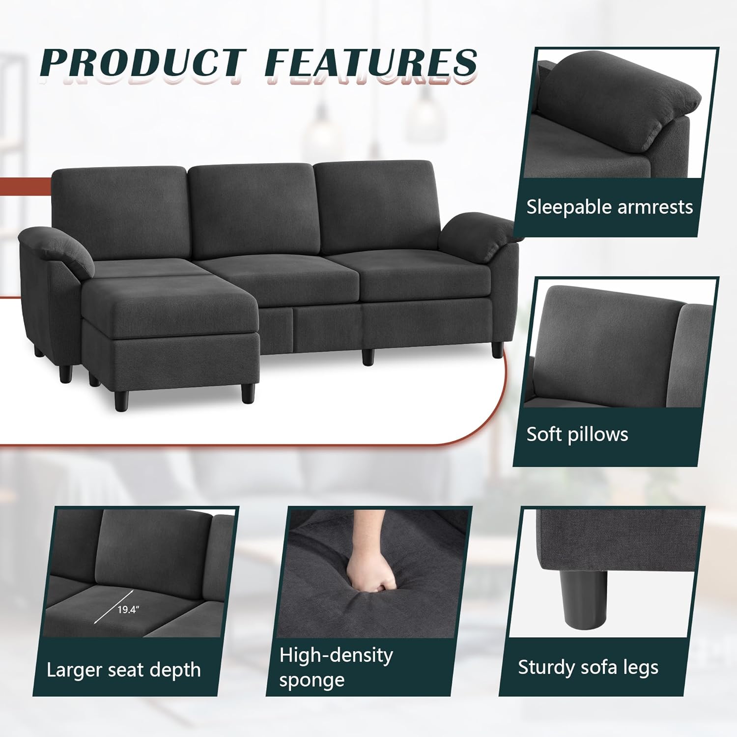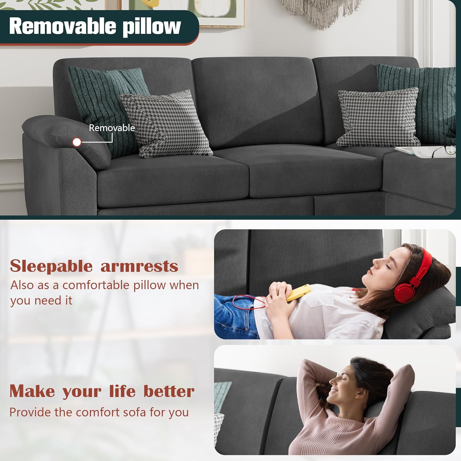 Comfortable Sectional Sofa: The sofa is made of modern linen fabric with a hardwood frame as the basic structure. The linen fabric is comfortable and not easy to pilling, fading. Soft cushions and a reinforced back, eases the rebound, providing strong comfort.