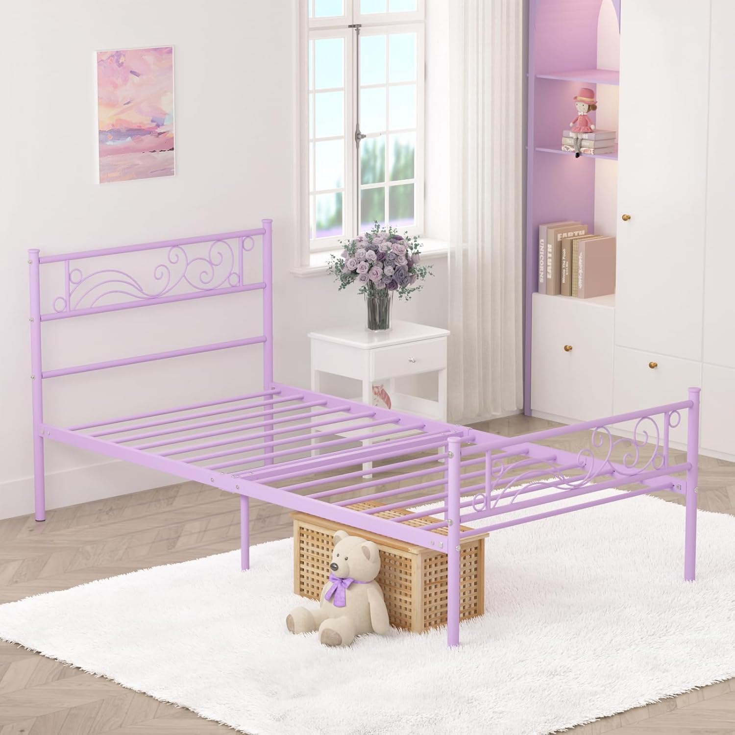 Weehom Twin Bed Frame with Headboard, Princess Bed Metal Platform No Box Spring Needed,Heavy Duty Metal Slats Support Easy Assembly for Kids Girls Adults Purple
