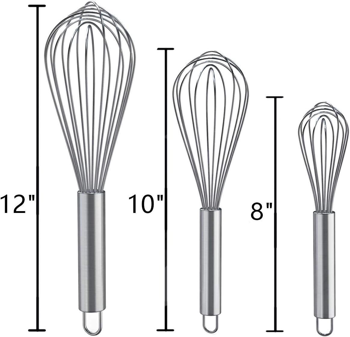 [A Must-have Whisk Set Stainless Steel for the Starter]:3 different size wire whisk stainless steel (12 “+ 10 “+8 “)with hooks.No need for multiple purchases, all at once demand.