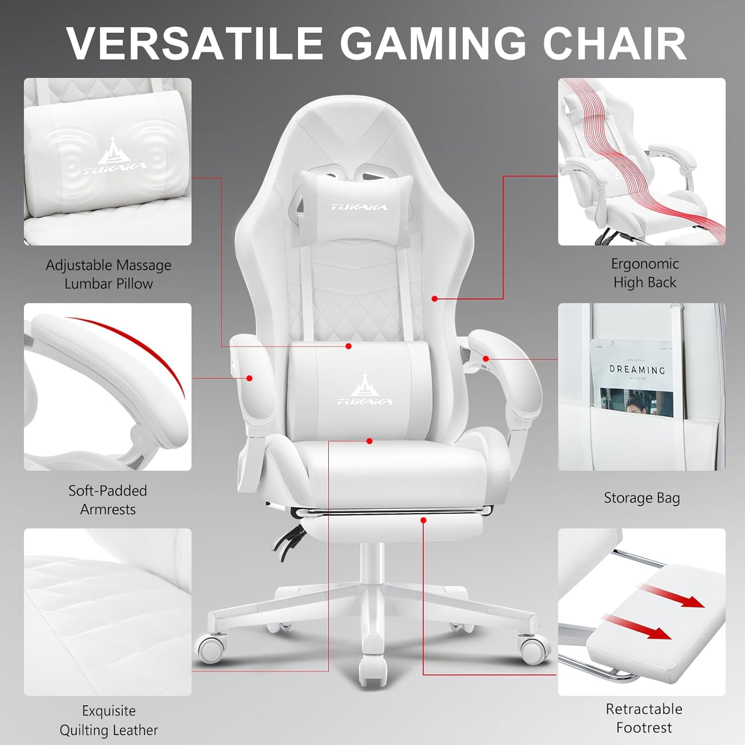 The premium design of Tukaka gaming chair shows meticulous craftsmanship for each product.We love aesthetics, superior materials, comfort, and want to turn it into a product to pass on to users,that’s what we’re doing.