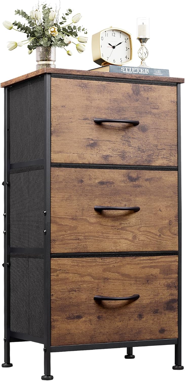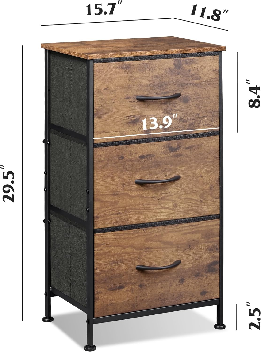 WLIVE Dresser with 3 Drawers, Fabric Nightstand, Organizer Storage Dresser for Bedroom, Hallway, Entryway, Closets, Sturdy Steel Frame, Wood Top, Easy Pull Handle, Rustic Brown Wood Grain Print