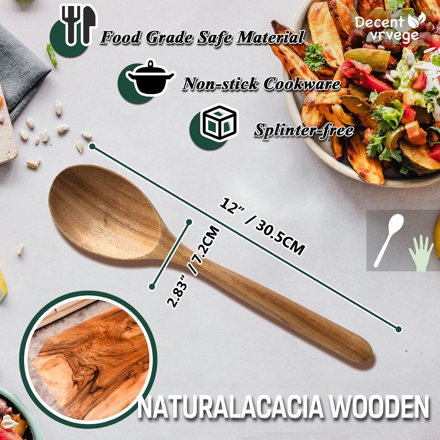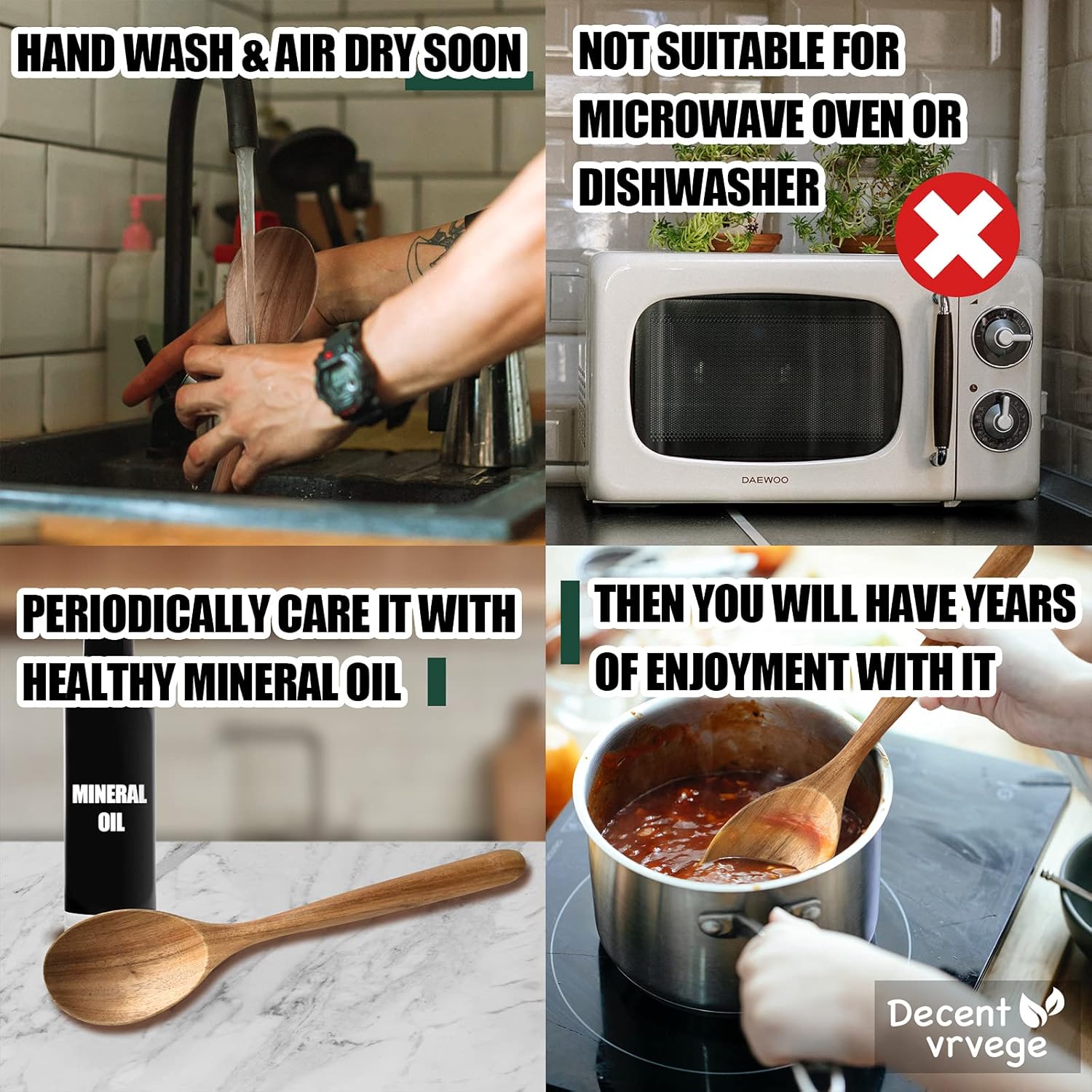 【HEALTHY ACACIA SPOONS】Our wooden spoon for cooking is made of one-piece hardwood, no splicing, no deformation, high heat resistance, sturdiness, and food-safe material. Wooden spoons tableware used in cooking is healthier than other materials. Due to natural wood’s unique texture and color, no two spoons are the same.