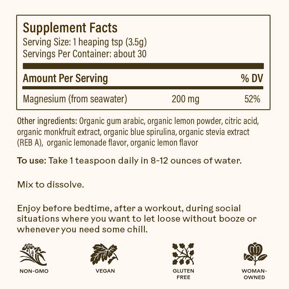 Wooden Spoon Herbs Magic Magnesium Citrate Powder Drink Mix (Blue Lemonade) | 200mg Sea-Sourced Magnesium | Relaxation, Hydration & Digestive Support | Easy Mix Magnesium Supplement Powder | 3.7oz
