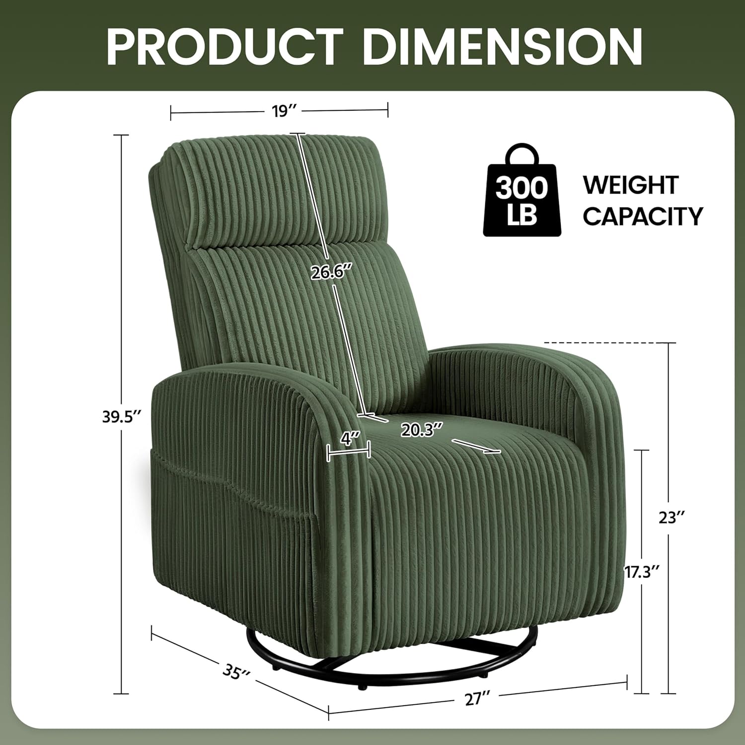 Yaheetech 360° Swivel Glider Chair for Nursery, Rocking Chair Nursing Chair with Side Pockets, Corduroy Glider for Living Room with High Back Dark Green