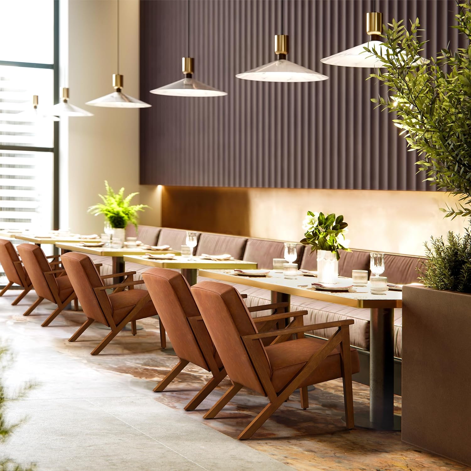 Yaheetech Accent Chair, Armchair with Strong Wood Frame, PU Leather Modern Retro Lounge Chair for Living Room/Lounge/Office/Reception Area, 2 Pieces, Light Brown