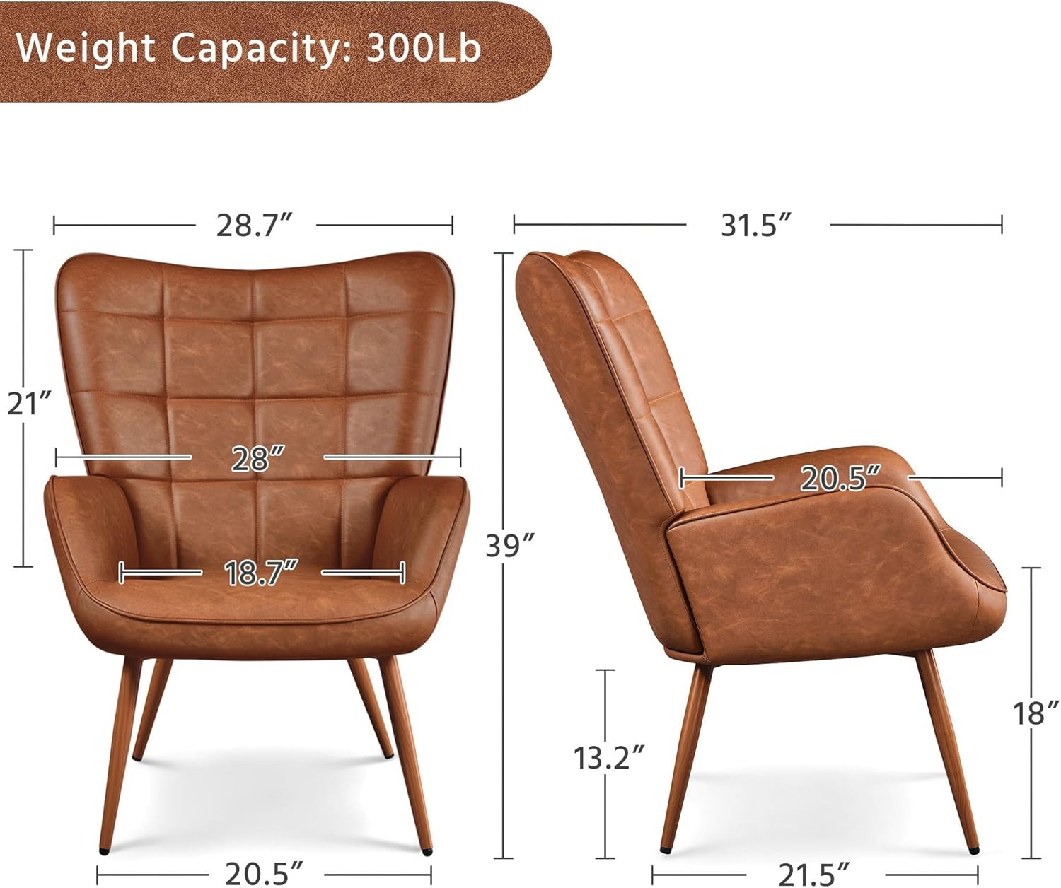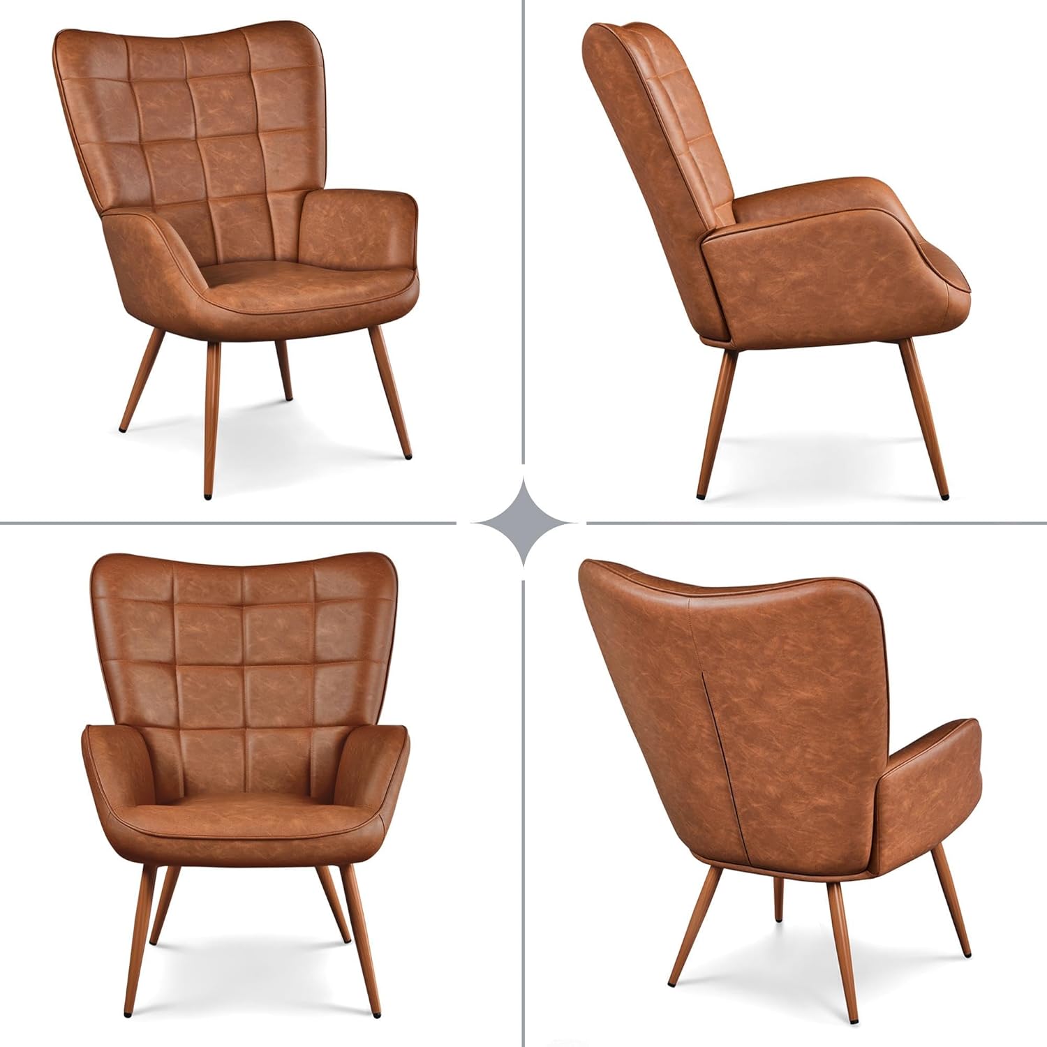 Yaheetech Accent Chairs, Large PU Leather High-Back Chair w/Metal Legs, Pottery Barn Style Living Room Chairs for Bedroom/Home Office, Camel