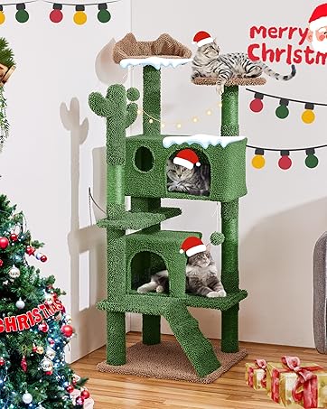 UNIQUE CUTE CACTUS LOOK: Our cactus-inspired cat tree is the perfect way to add some playful charm to your home. The sleek design is super cute and will fit right in with any modern decor. Wrapped with green and brown moppy fabric, it looks just like a real cactus and will bring a fresh touch to your living space