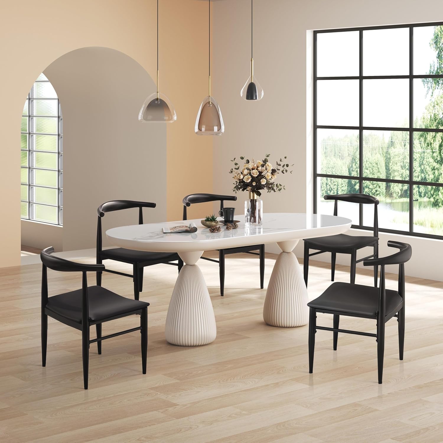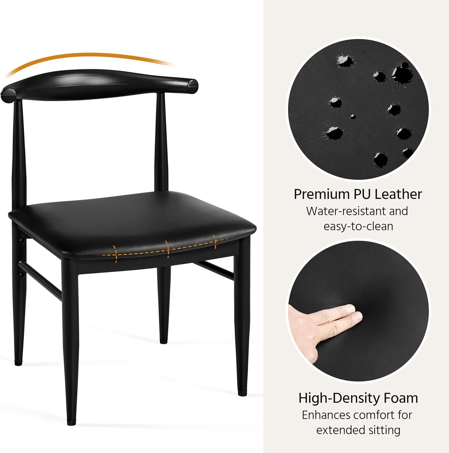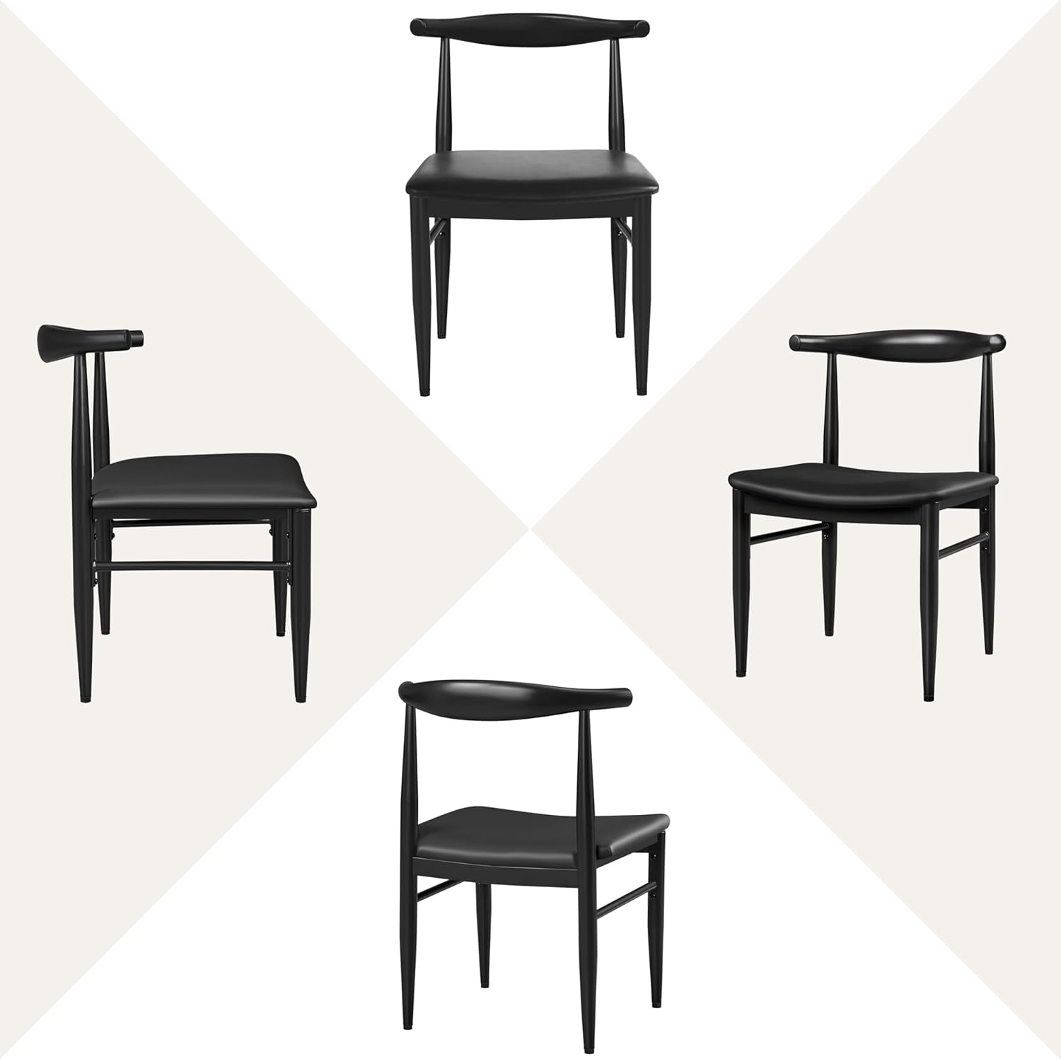 Yaheetech Dining Chairs Set of 6 Mid Century Modern Leather Dining Room Chairs with Armless Backrest & Metal Legs for Kitchen, Living Room, Black