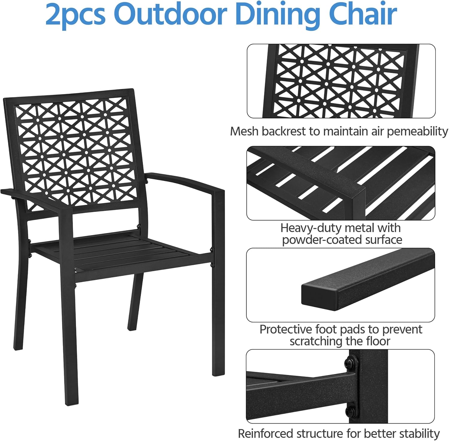 Yaheetech Outdoor Patio Dining Chairs Set of 2 with Armrests and Metal Frame, Heavy-Duty Metal Black Outdoor Chairs Stackable for Garden, Lawn and Yard