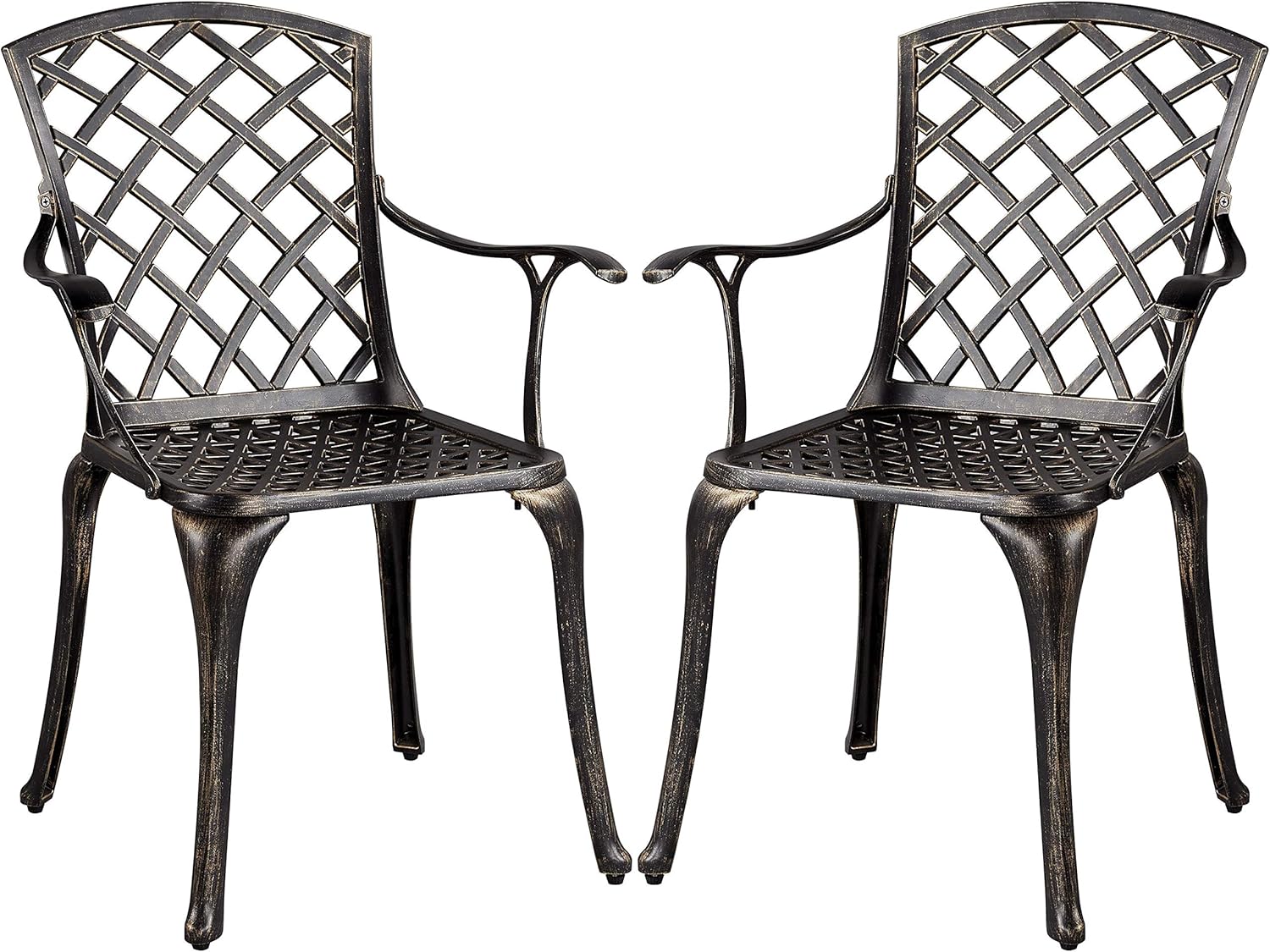 Yaheetech Patio Dining Chairs with Armrests Weather Resistant Cast Aluminium Bistro Chairs Outdoor Metal Chairs for Garden Lawn Porch Backyard Pool Lattice Weave Design, Bronze