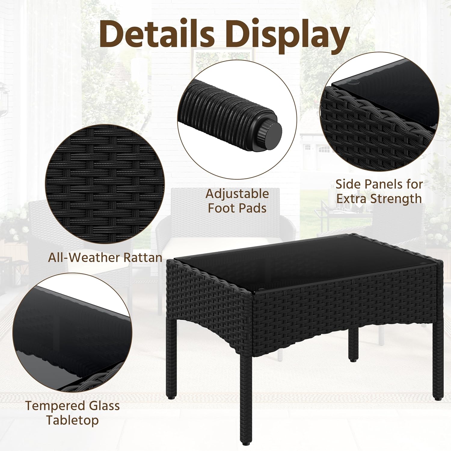 Yaheetech Patio Furniture Set 4 Pieces Conversation Sets, Rattan Chair Wicker Set Loveseat with Soft Cushion and Glass Table for Backyard Porch Garden Poolside Balcony, Black and Beige