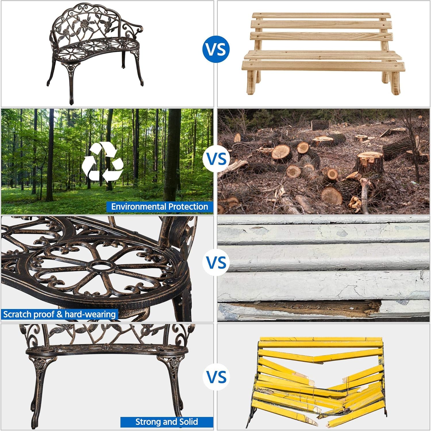 Versatile Outdoor Bench: With sturdy material and rust & water-resistant high-quality finish, our park metal bench can be used in all outdoor settings. It will look beautiful in your backyard, parks and gardens. A patio metal bench is an ideal choice for an outdoor cafe setting in antique style.